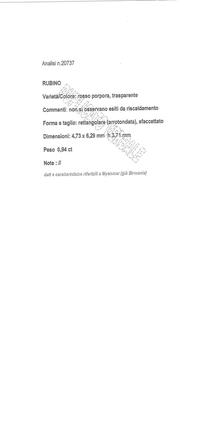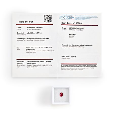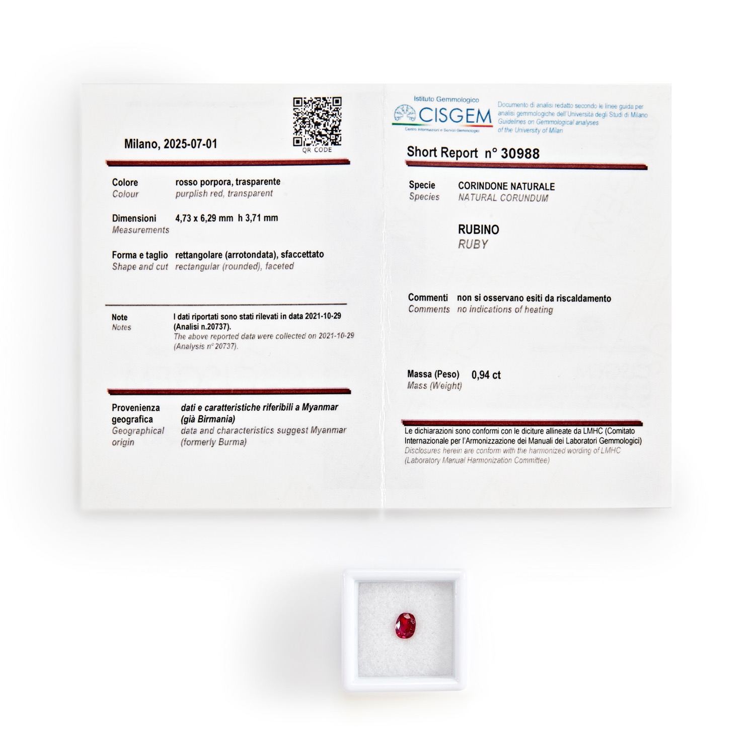 Rubino Burma in cartina di ct 0,94 mm 4,73 x 6,29 h mm 3,71