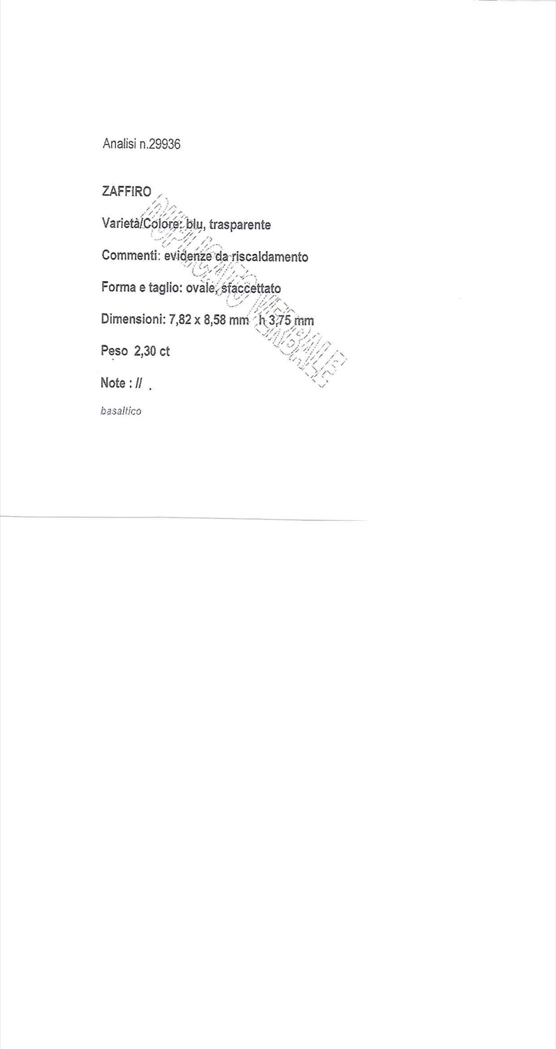 Previous Lot 170 Next Finarte - Via dei Bossi 2, 20121 Milano Gemme / Tutti i colori della natura Sessione unica Tuesday 23 September 2025 hours 11:00 (UTC +01:00) Zaffiro basaltico in cartina ct 2,30 mm 7,82 x 8,58 h 3,75 di forma ovale, taglio sfaccettato, heat.