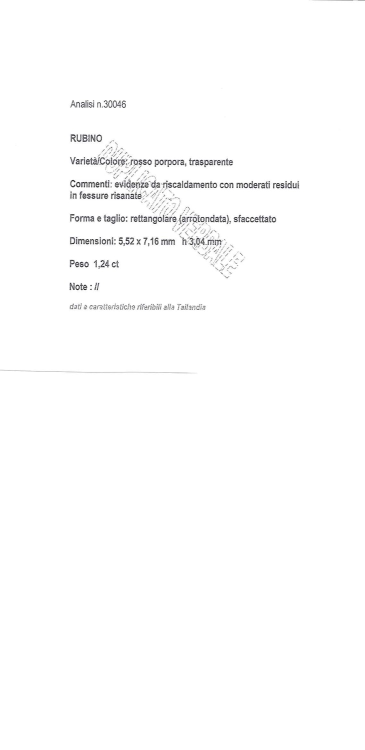 Rubino Tailandia in cartina ct 1,24 mm 5,52 x 7,16 h mm 3,04