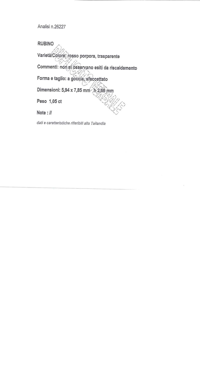 Rubino Tailandia in cartina ct 1,05 mm 5,94 x 7,85 h mm 2,66