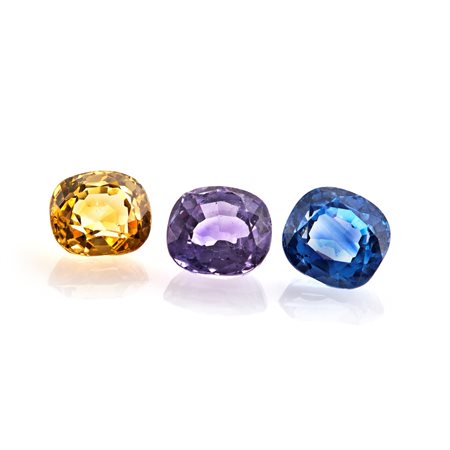 di colore blu, giallo, rosa, di forma rettangolare (arrotondata), taglio sfaccettato.