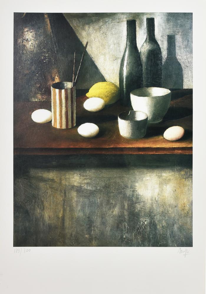 Marcello Scuffi NATURA MORTA CON LIMONE E UOVA litografia su carta, cm...