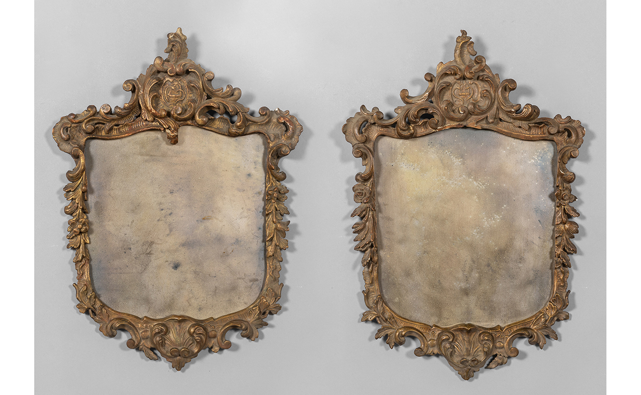 Coppia di specchiere in stile Luigi XV in legno intagliato e dorato sec.XX