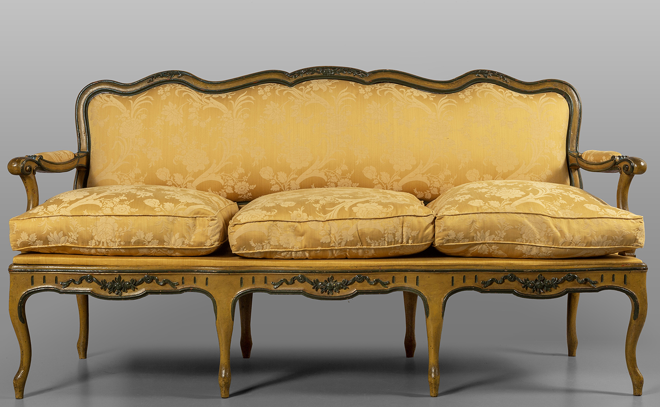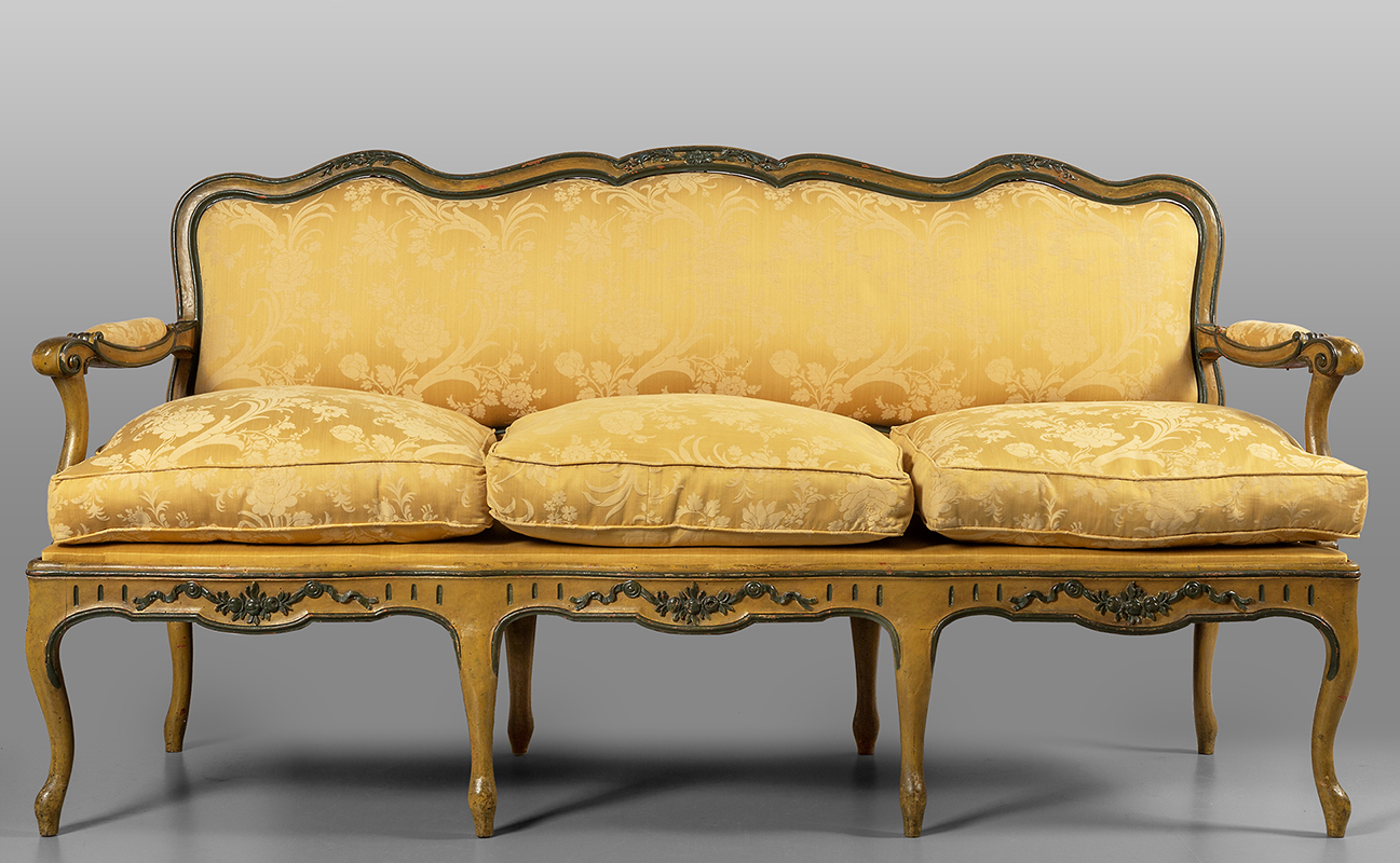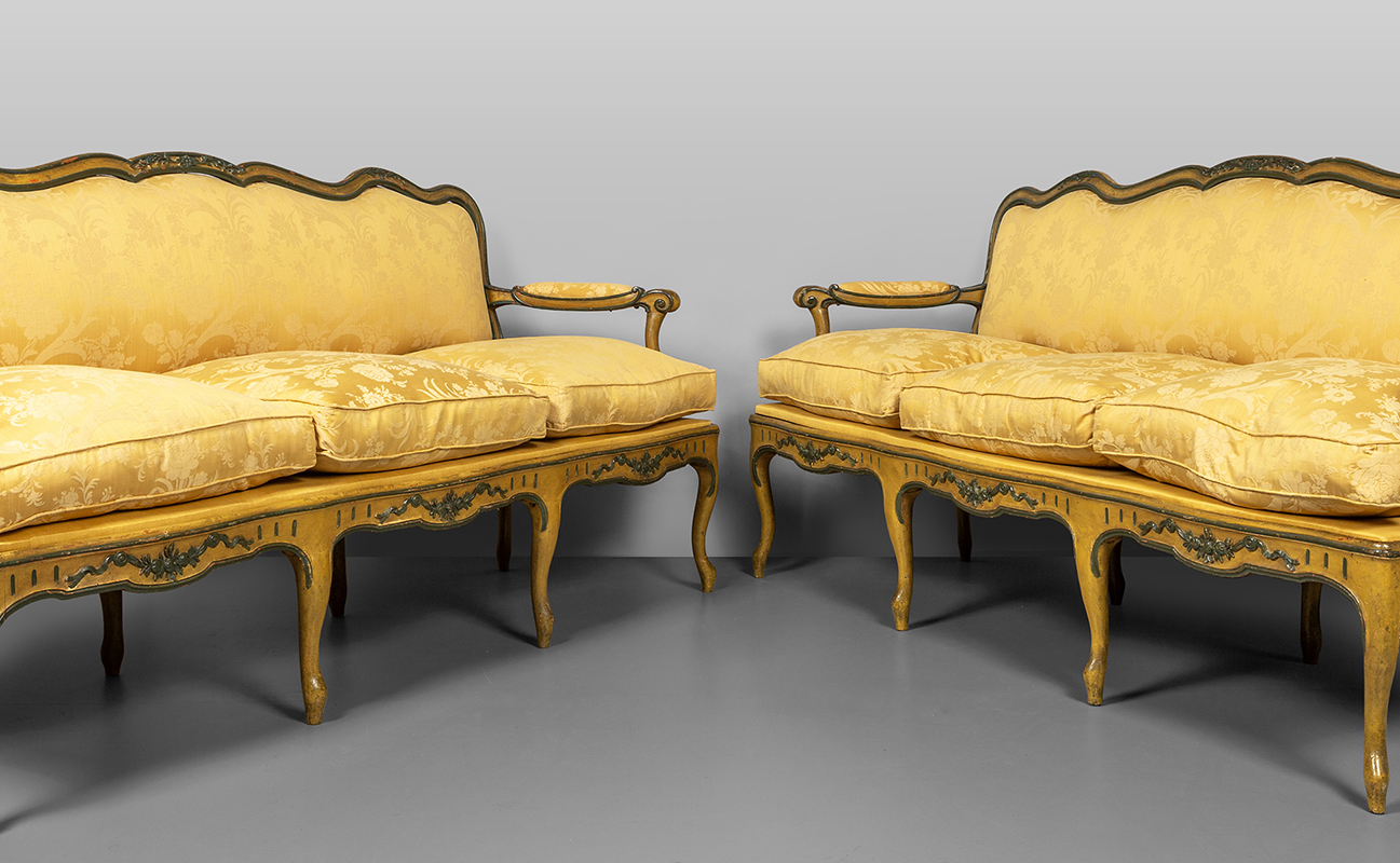Coppia di divani Luigi XV in legno intagliato e laccato Lombardia sec.XVIII