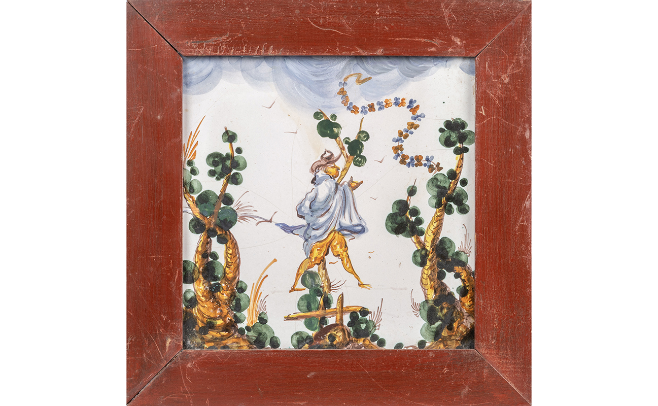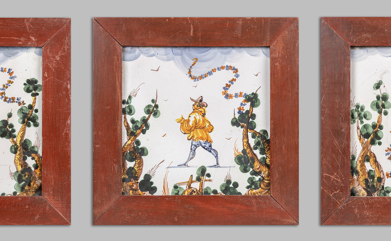 Tre mattonelle dipinte in policromia La Casa dell'Arte Savona