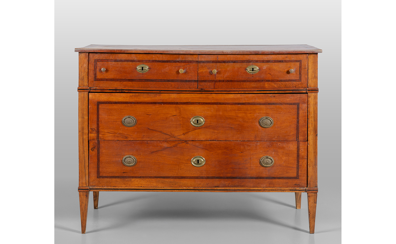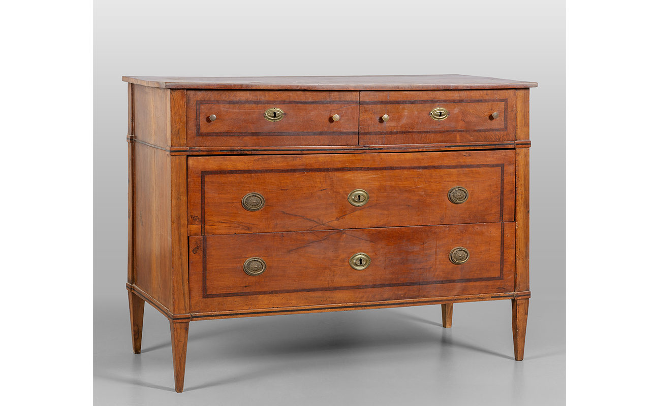 Comò Luigi XVI in noce a due cassetti grandi e due piccoli Genova fine sec.XVIII