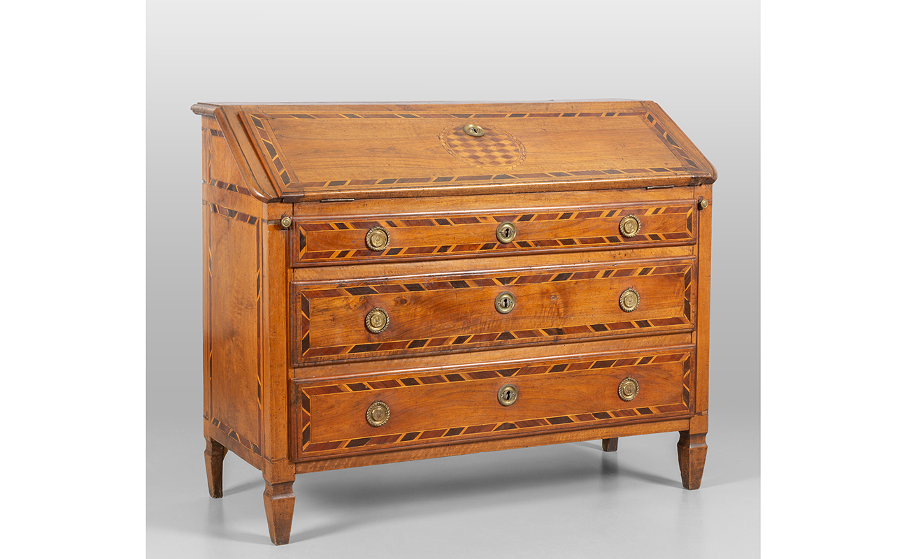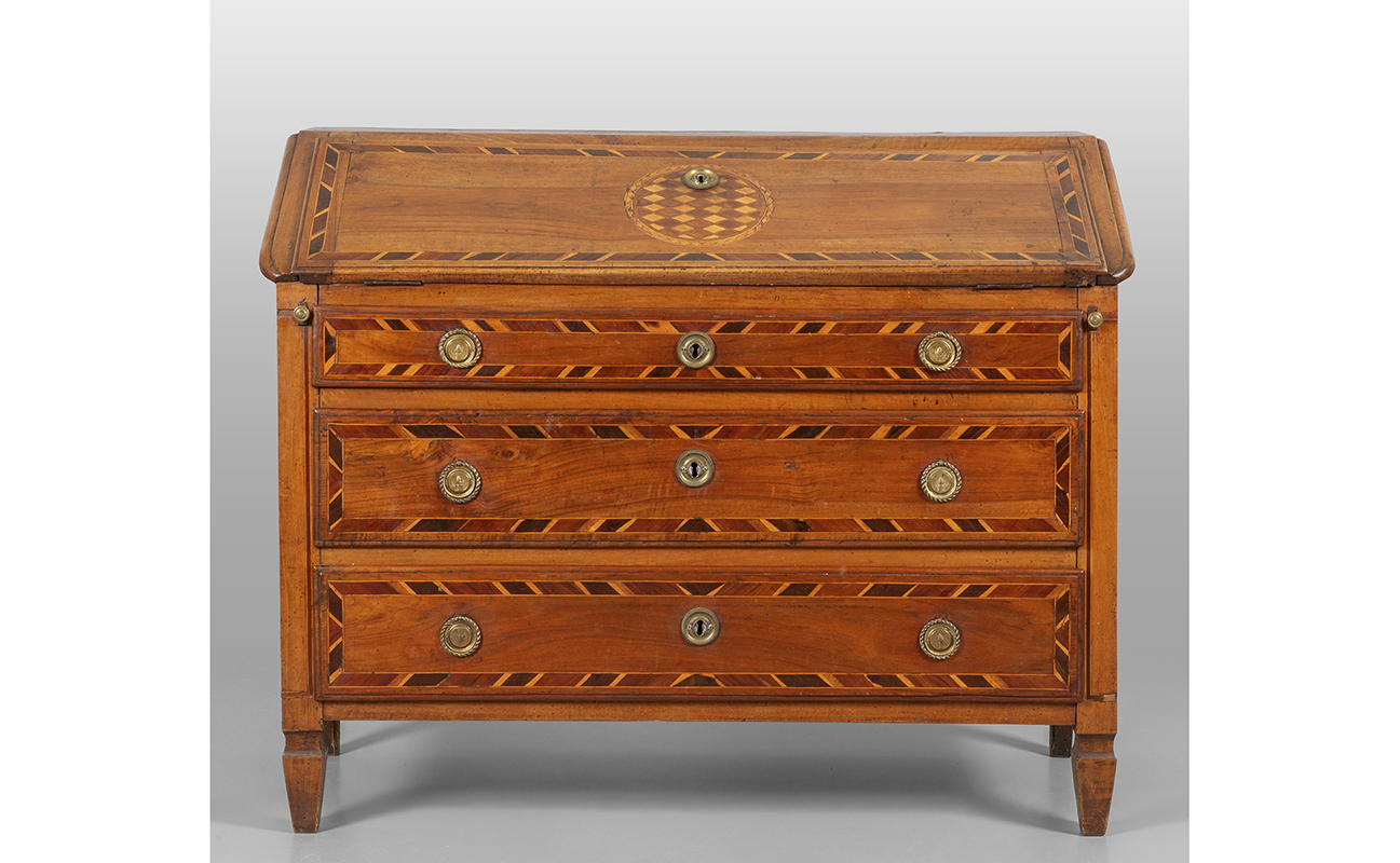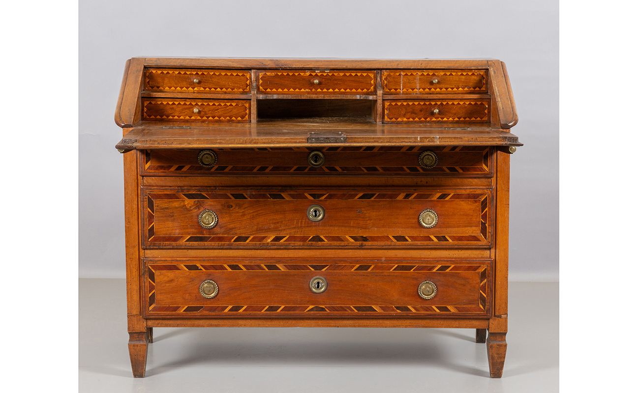 Ribalta Luigi XVI in noce filettata ed intarsiata in legni vari Piemonte sec.XVIII