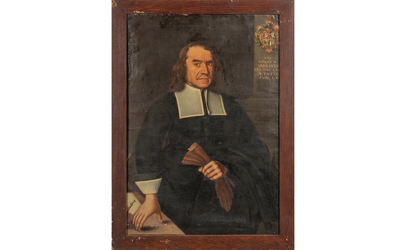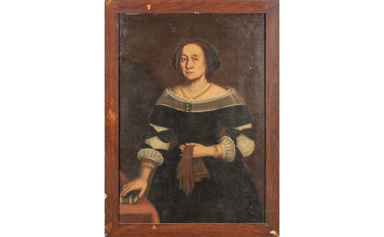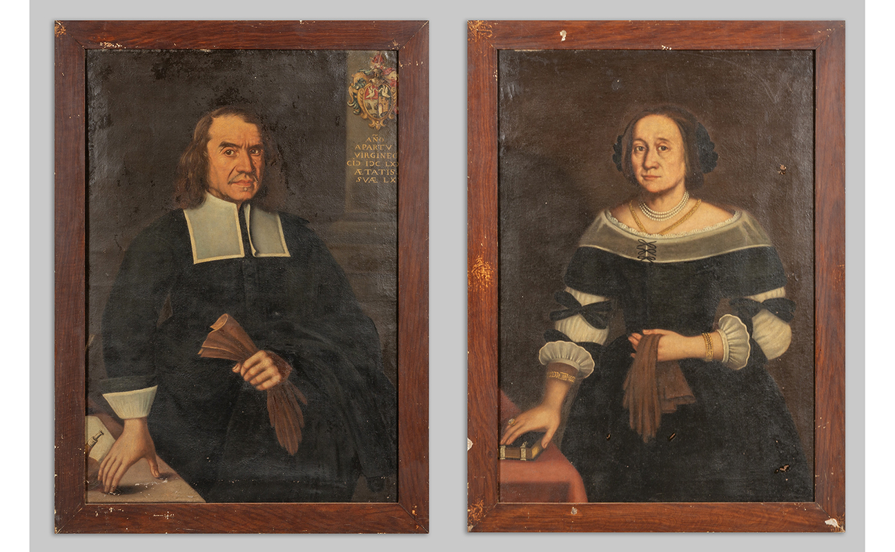 Scuola lombarda sec.XVII 'Ritratto di notabile con stemma' e 'Ritratto di Nobildonna' coppia di olii uno d.to 1670