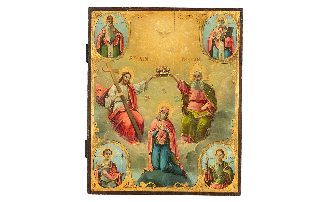 'Incoronazione della Vergine' icona tempera su tavola Russia sec.XIX