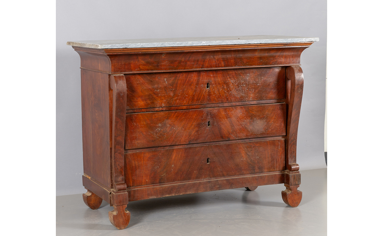 Comò Impero lastronato in mogano quattro cassetti sec.XIX