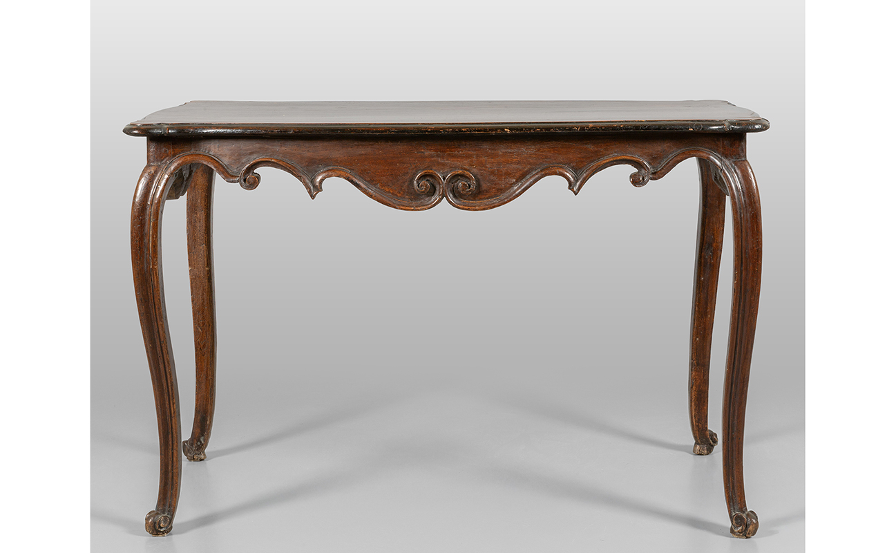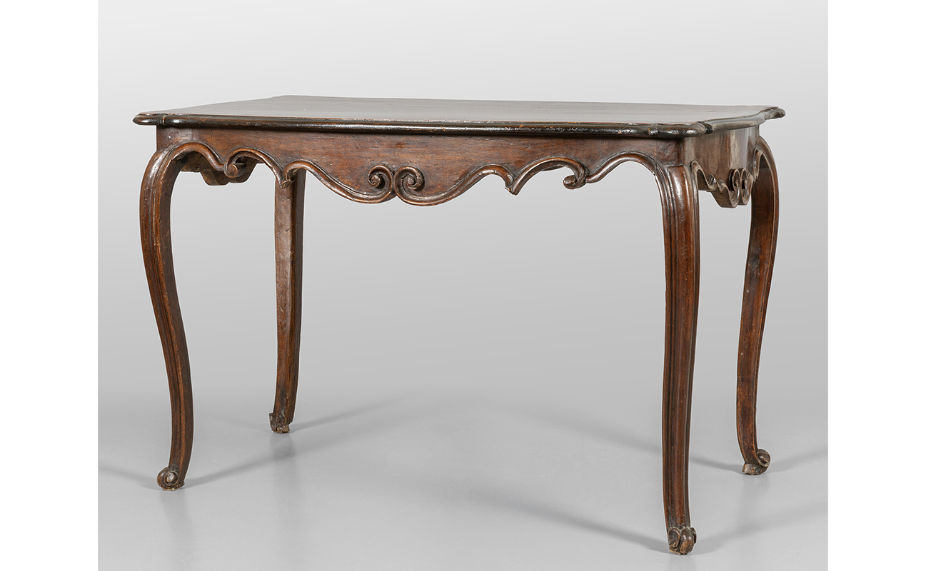 Tavolo da centro Luigi XV in noce intagliato Piemonte sec.XVIII