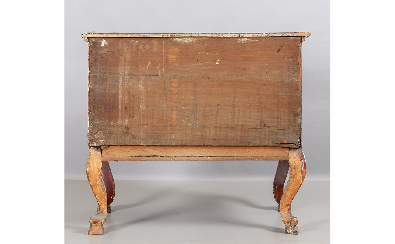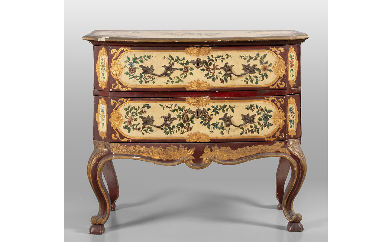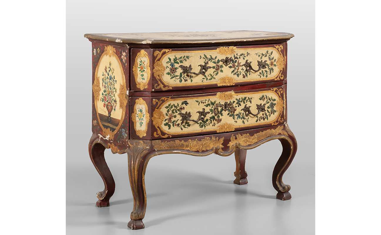 Comò in stile Luigi XV a due cassetti intagliato dorato e laccato Sicilia sec.XX