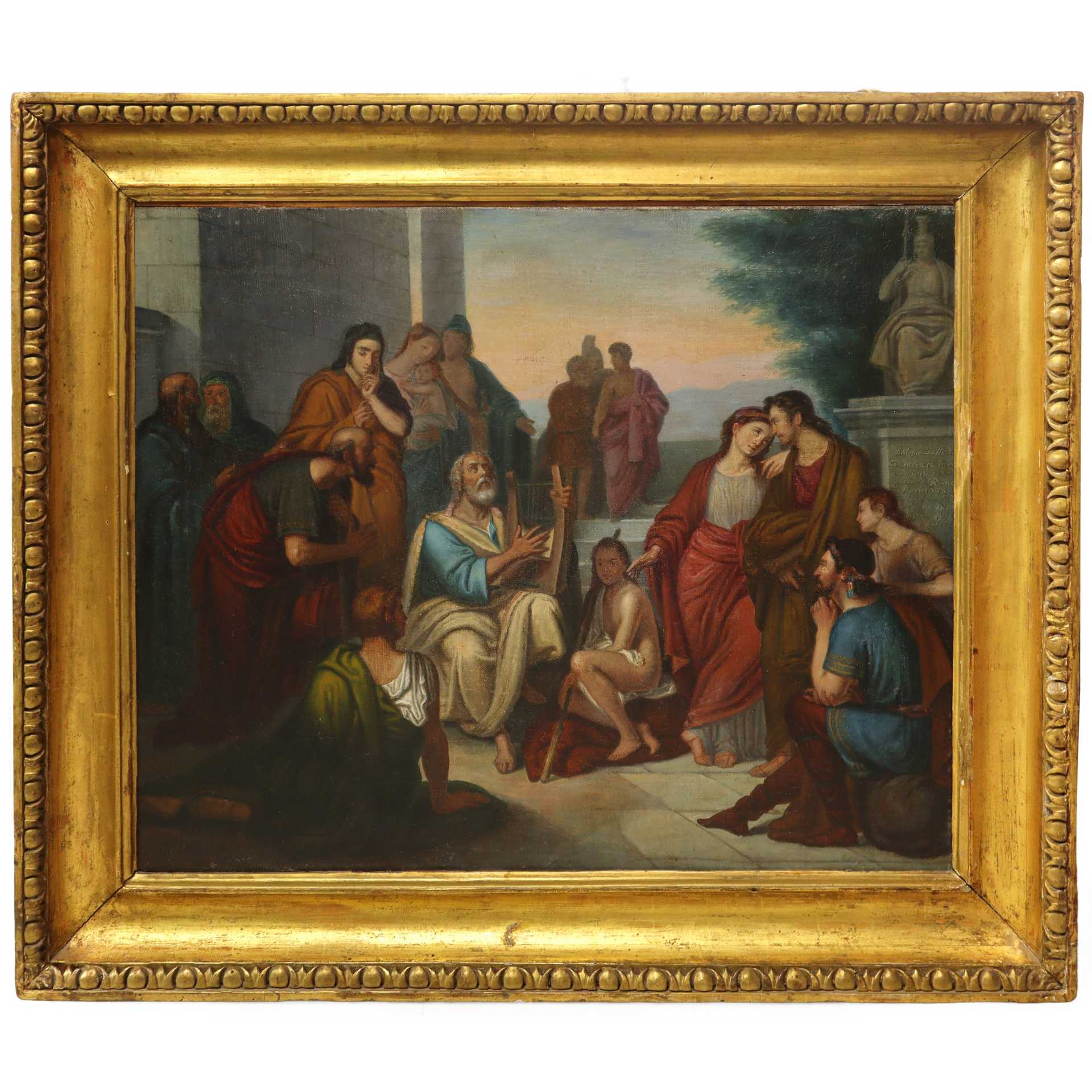 Omero con la cetra intento a declamare i suoi versi agli astanti , primi 19° secolo 63 x 77.5, in cornice 82 x 93 Olio su tela Dipinto di carattere neoclassico