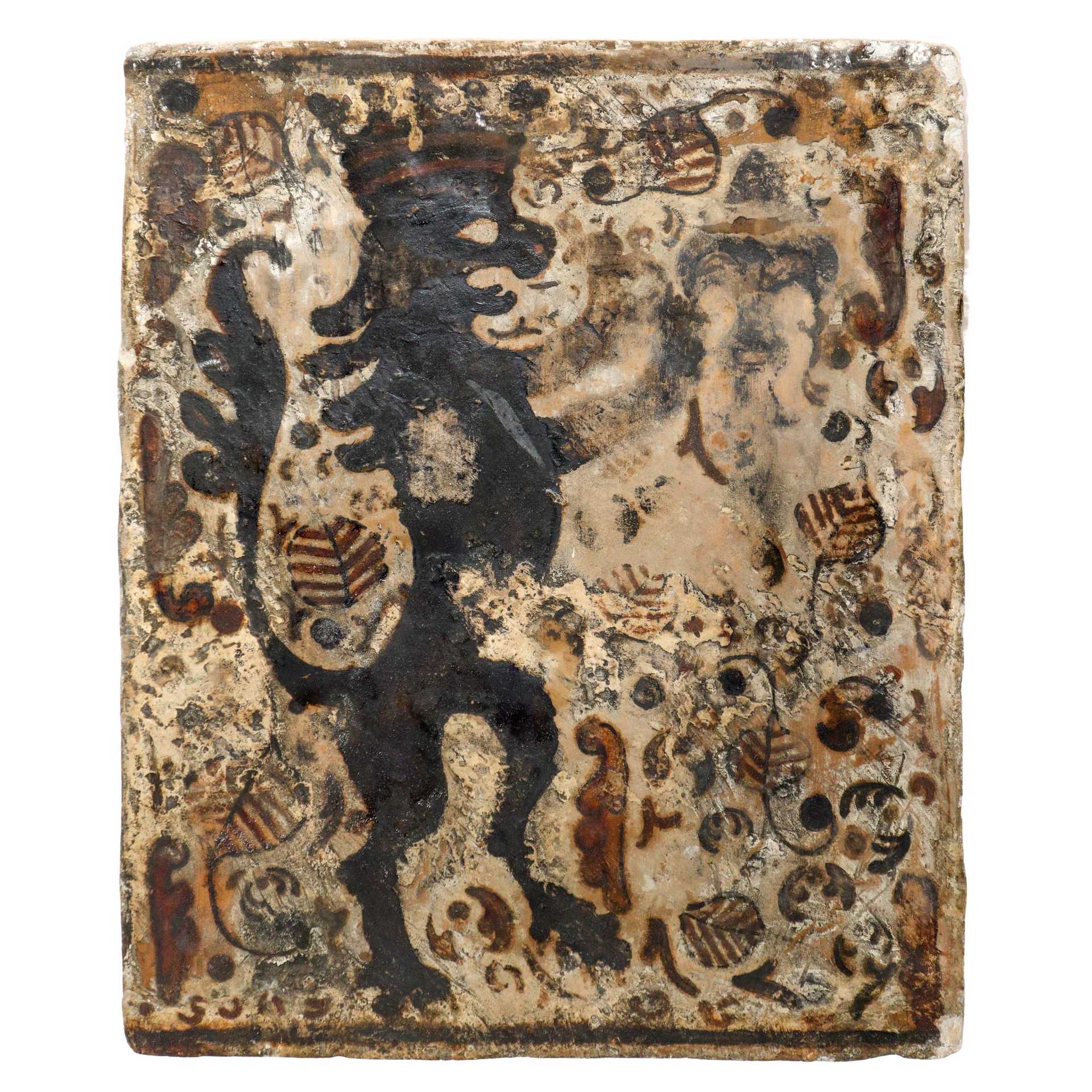 Placca Socarrat Valenziano in argilla cotta raffigurante Leone araldico