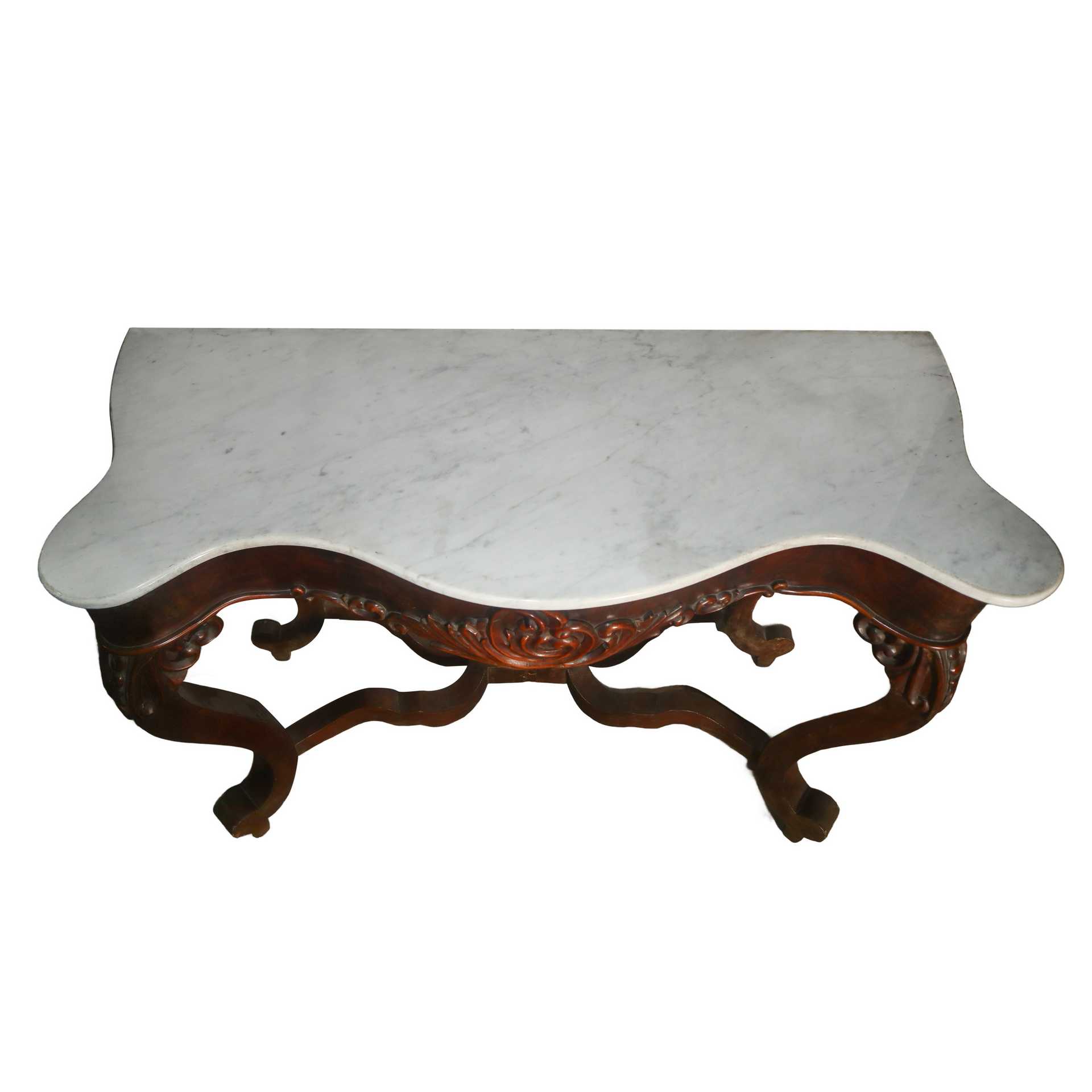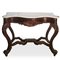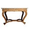 Consolle Luigi Filippo in legno di noce marmo al piano fronte intagliato gambe curve intagliate raccordate alla base da traverse convergenti al centro, 19° secolo