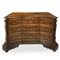 Cassettone veneto in legno di noce intarsiato con legni di acero, palissandro ed ebano piano di forma sagomata ed angoli scantonati, tre cassetti interamente intarsiati a motivi di ghirlande lati intarsiati a motivi fogliari con grandi uccelli entro tarsie rettangolari, piano interamente intarsiato in legni chiari, Veneto fine XVII secolo