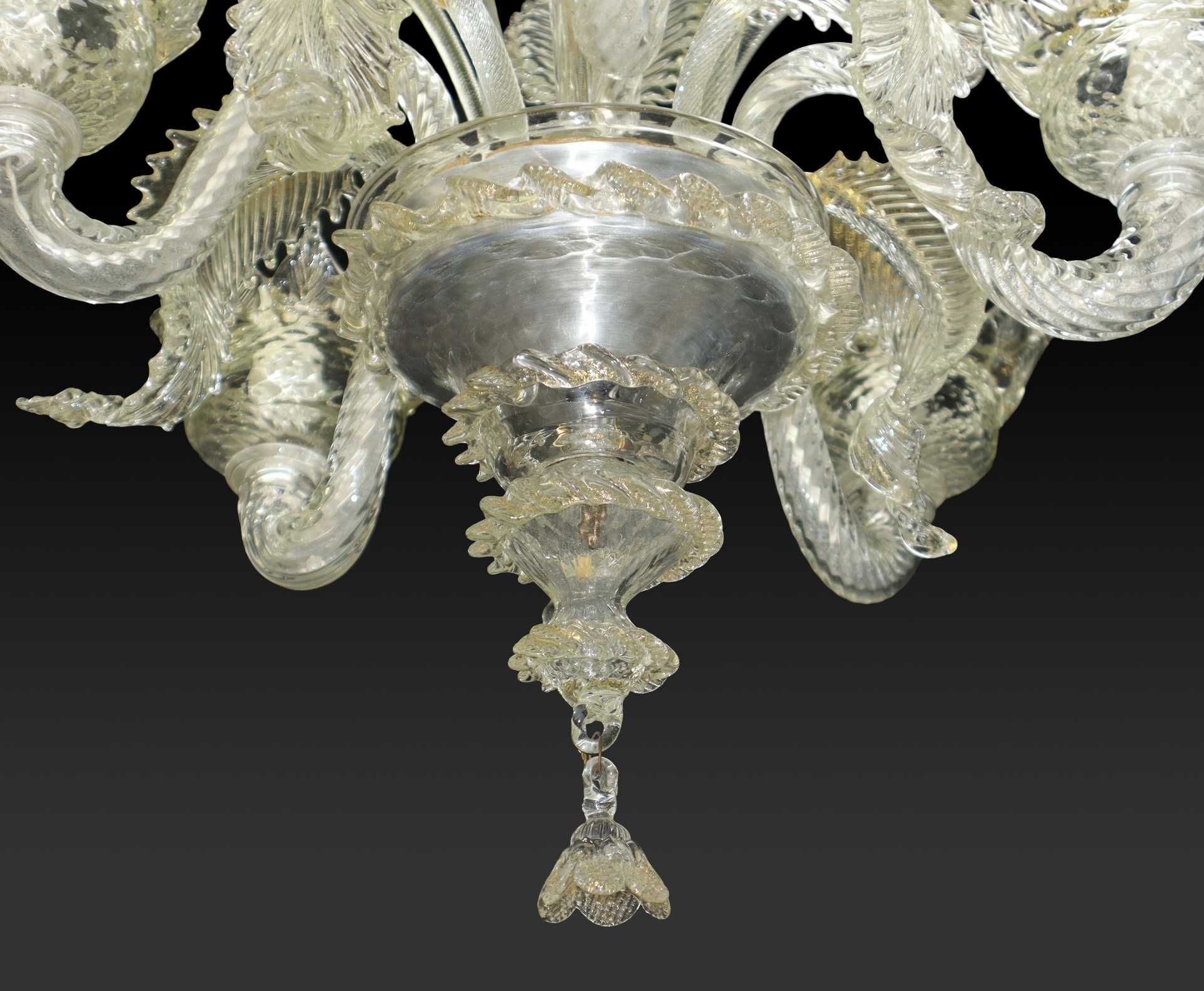 Lampadario in vetro di Murano soffiato a 5 luci con singolo giro di luci