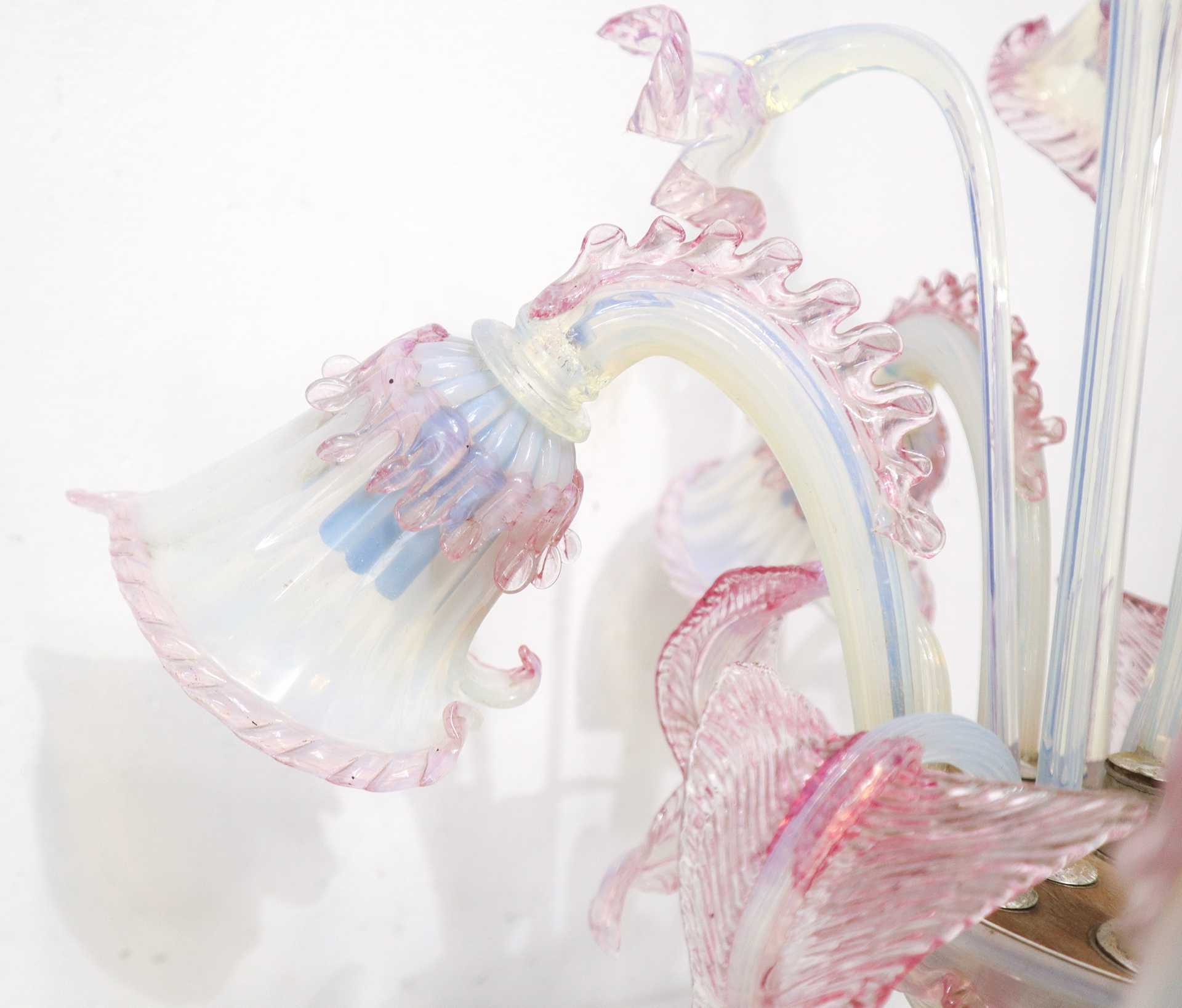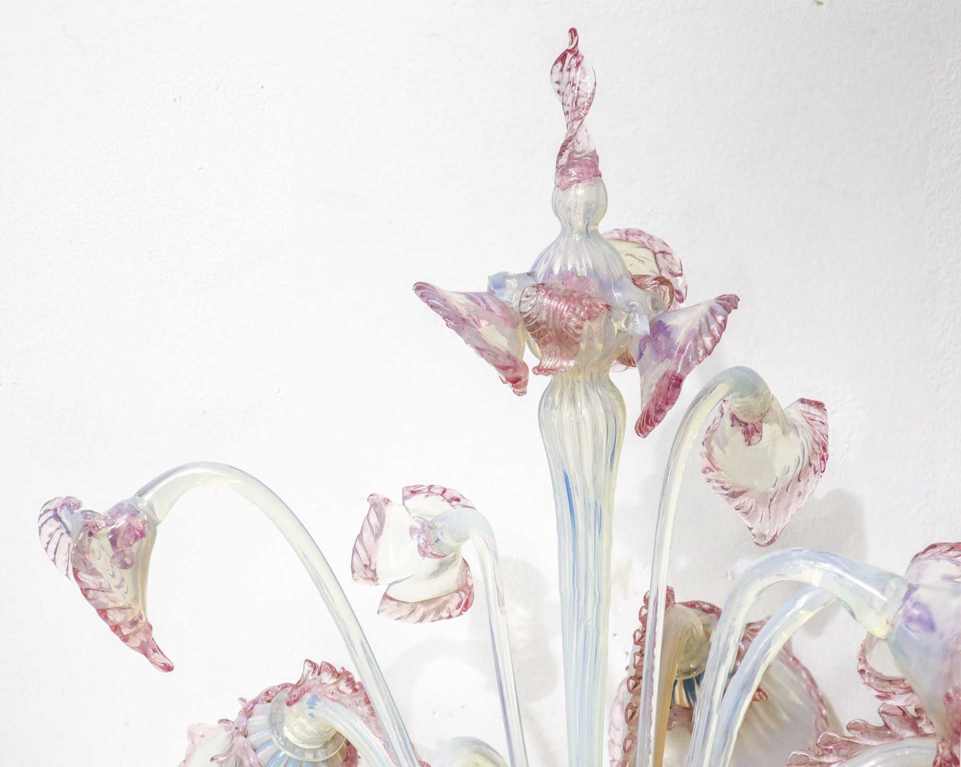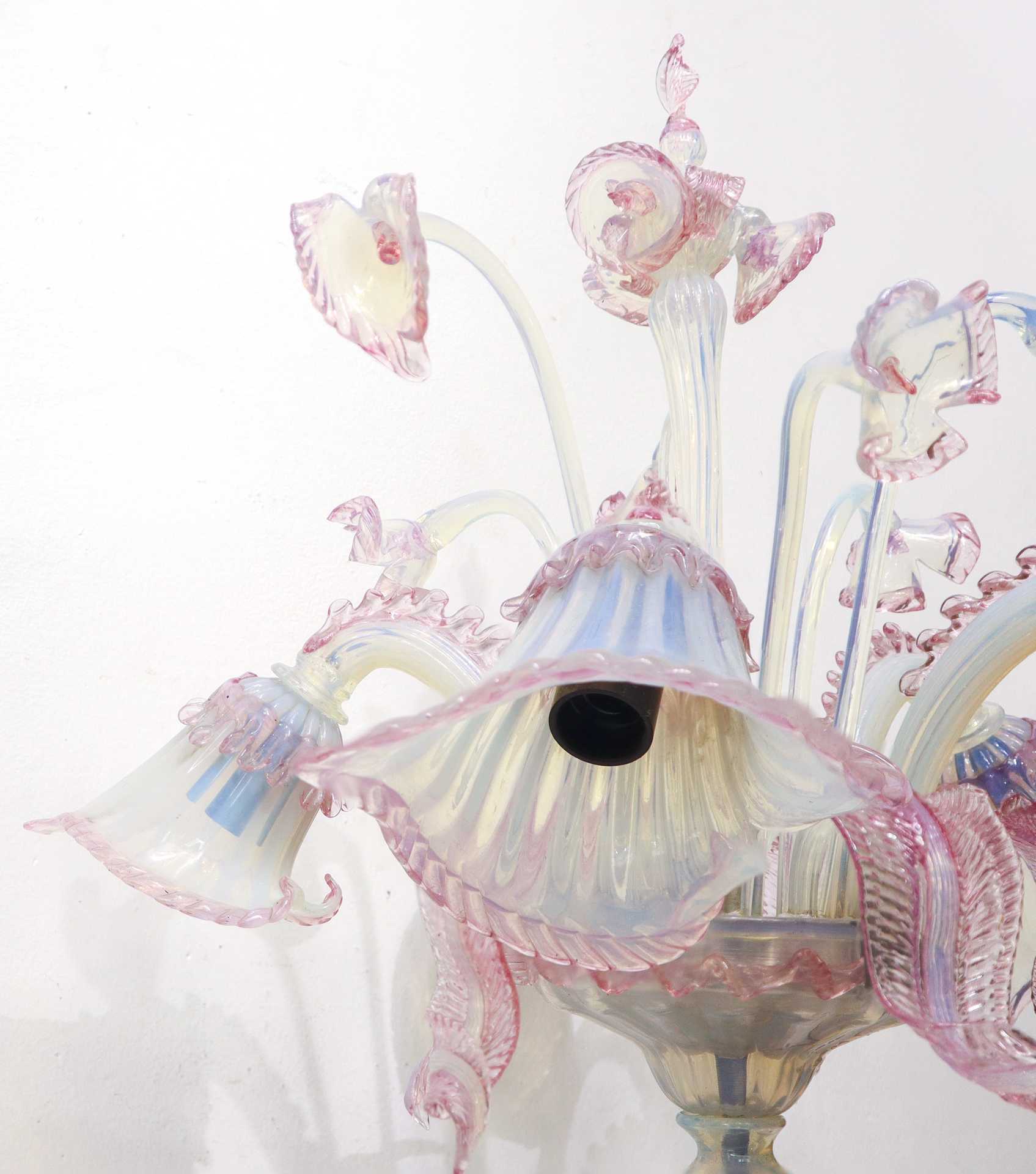Flambeau in vetro di Murano nei toni del rosa e del lilla, 19°/20° secolo
