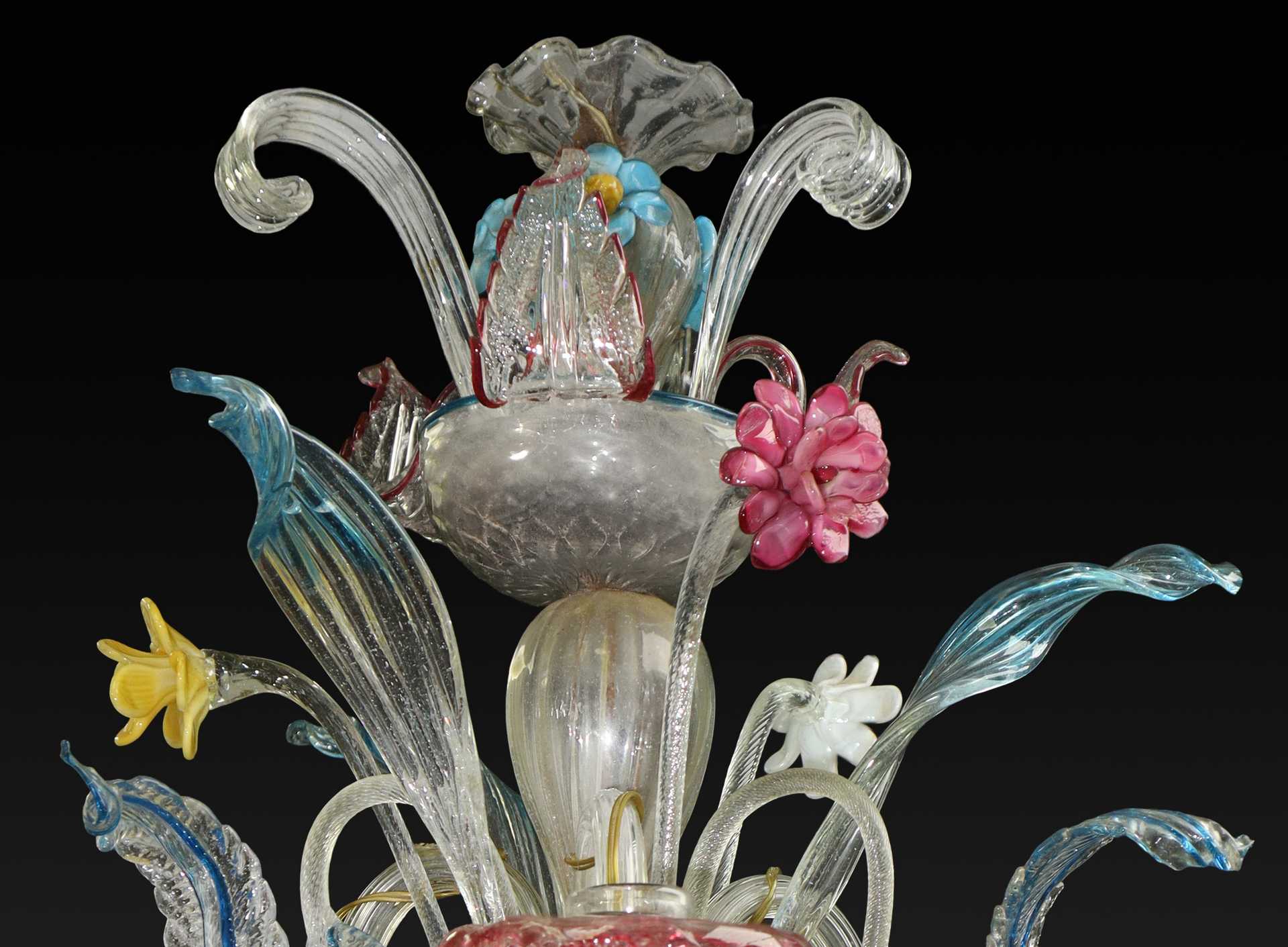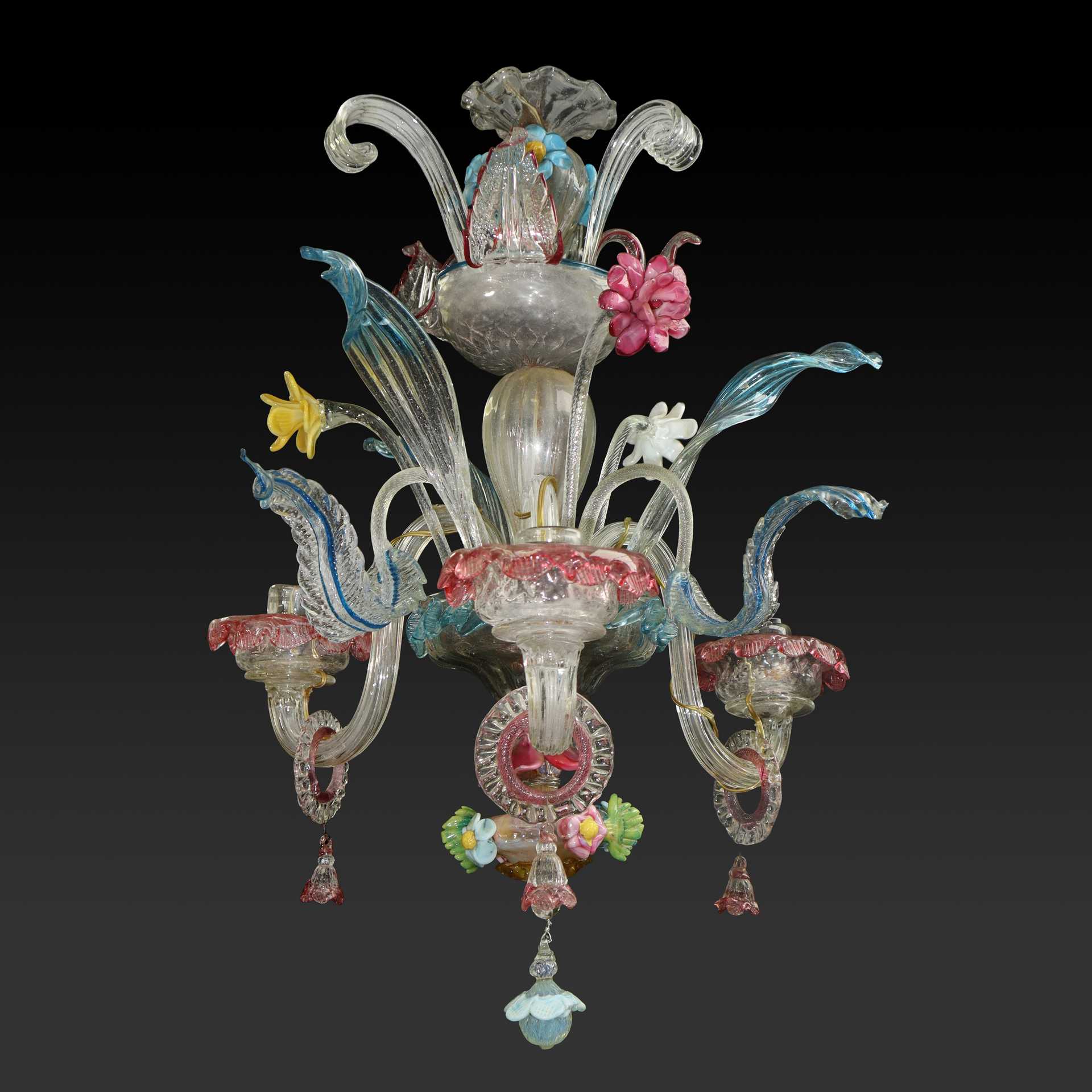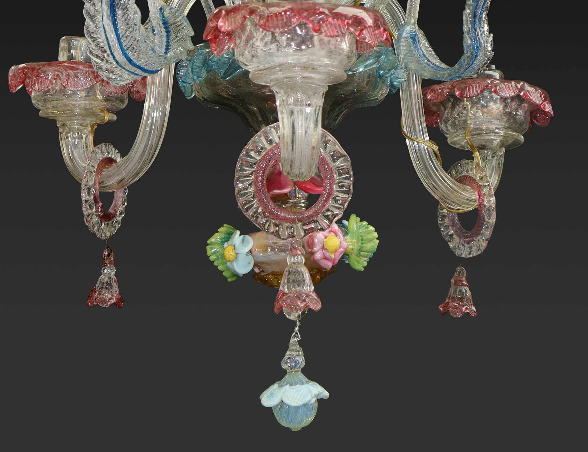 Piccolo lampadario in vetro di Murano policromo a 3 luci stile Ca'rezzonico