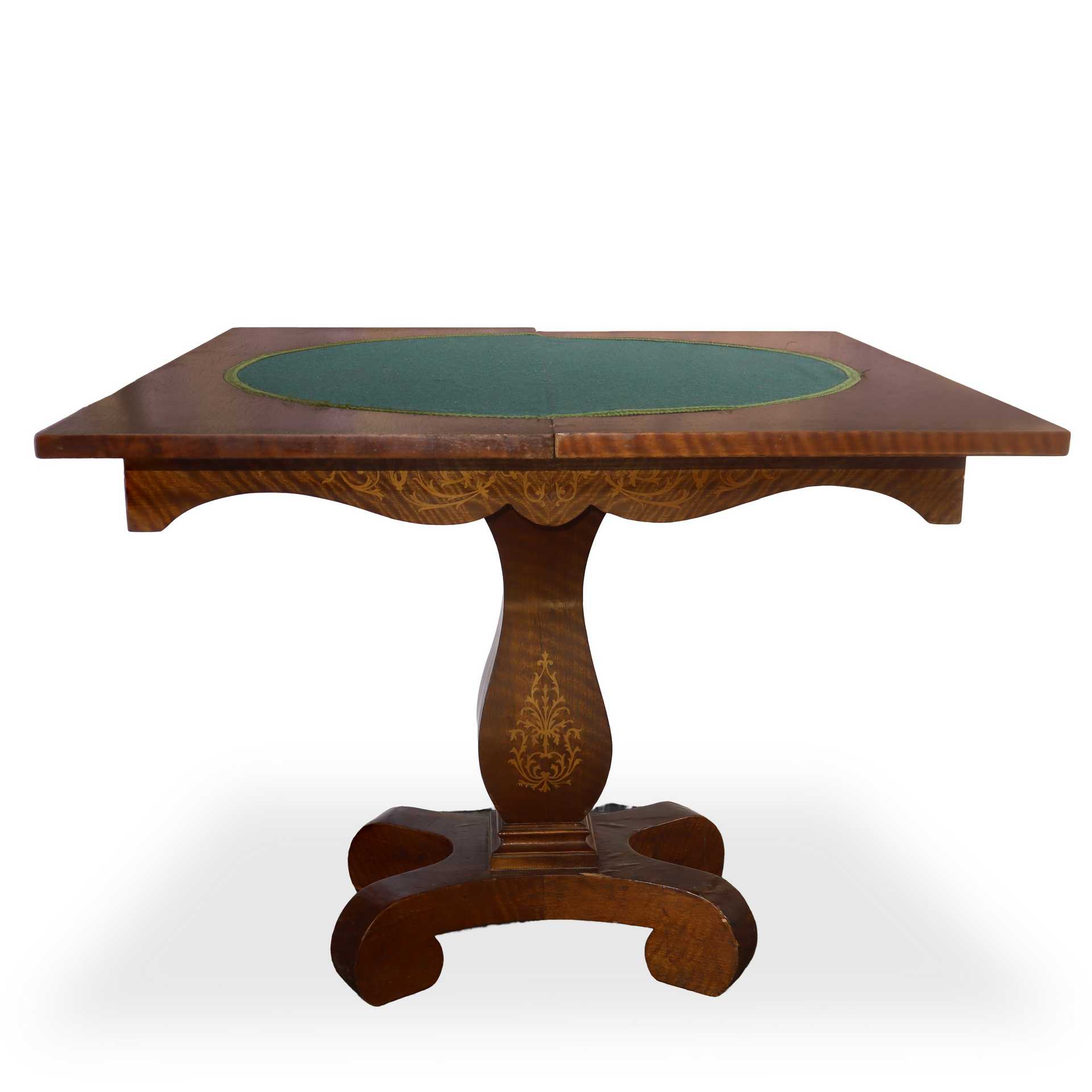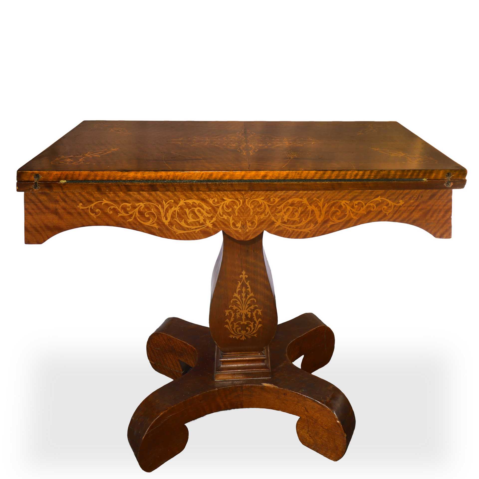 Tavolo da gioco con piano intarsiato a motivi floreali