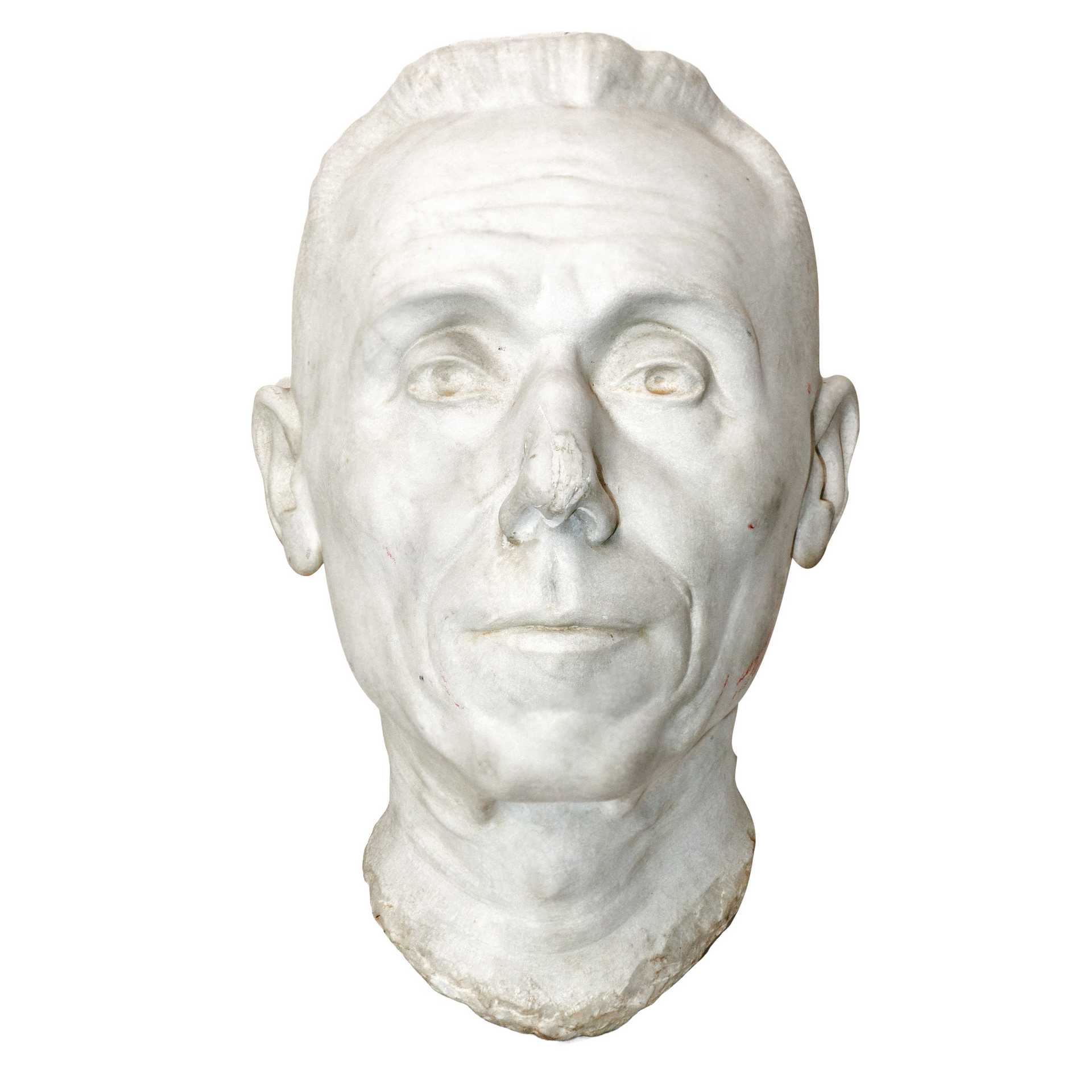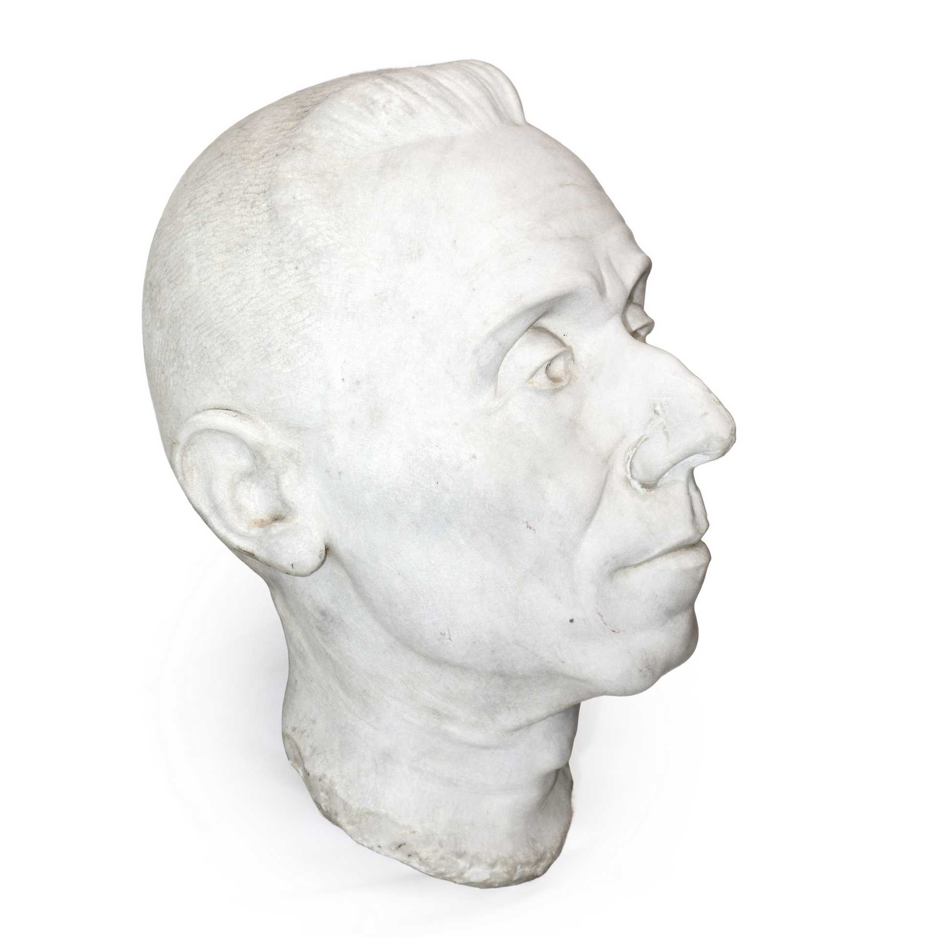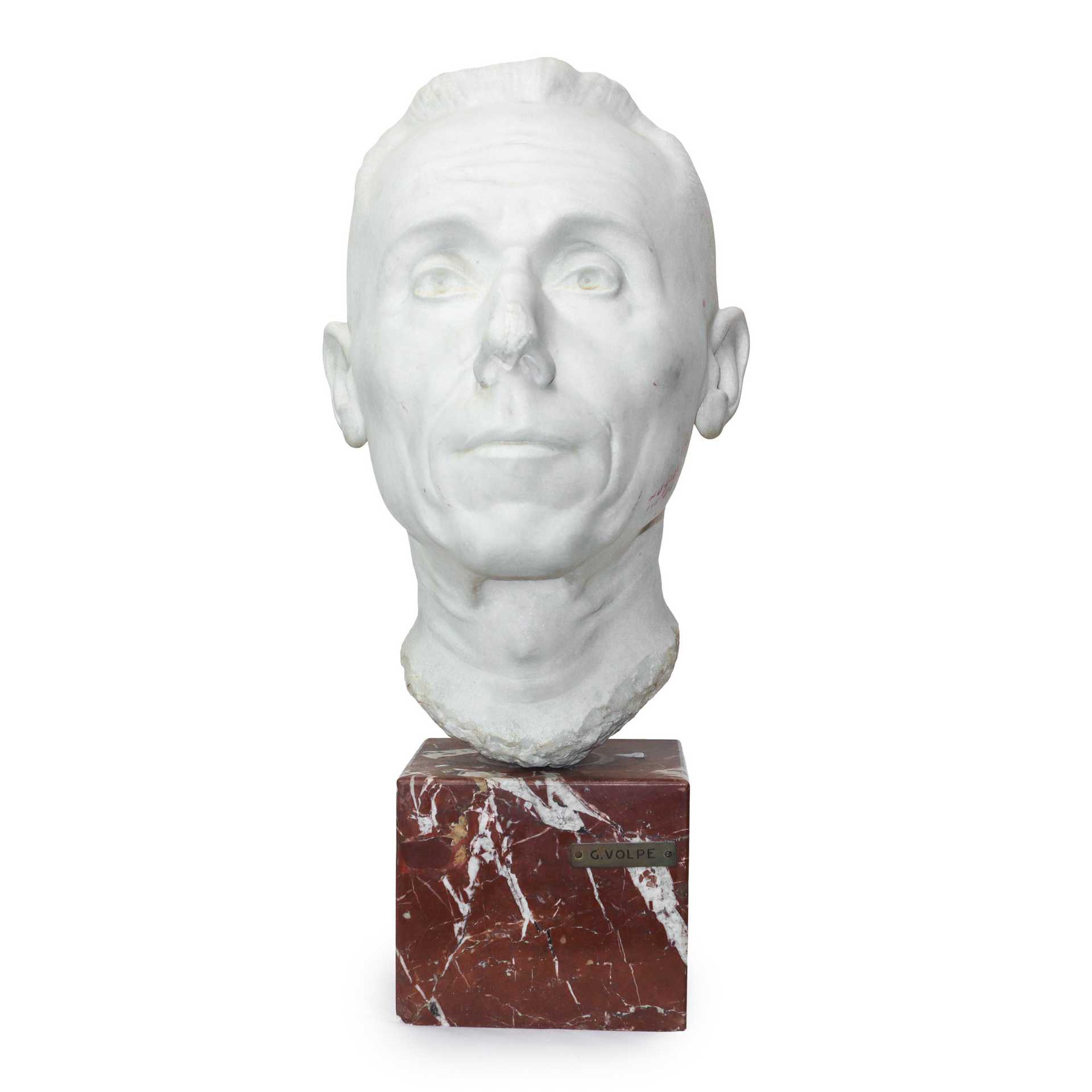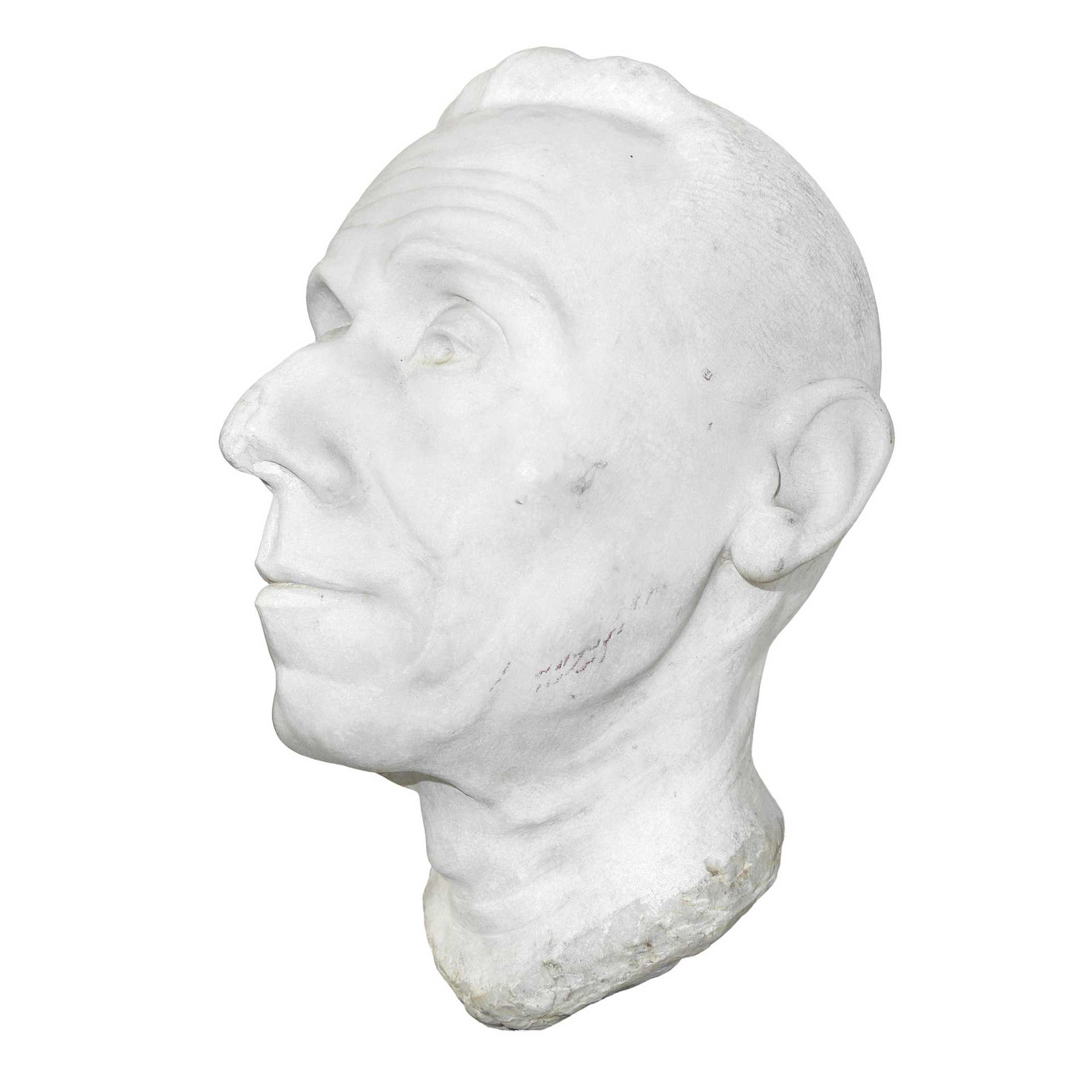 Testa di uomo, scultura in marmo bianco con basse in marmo rosso
