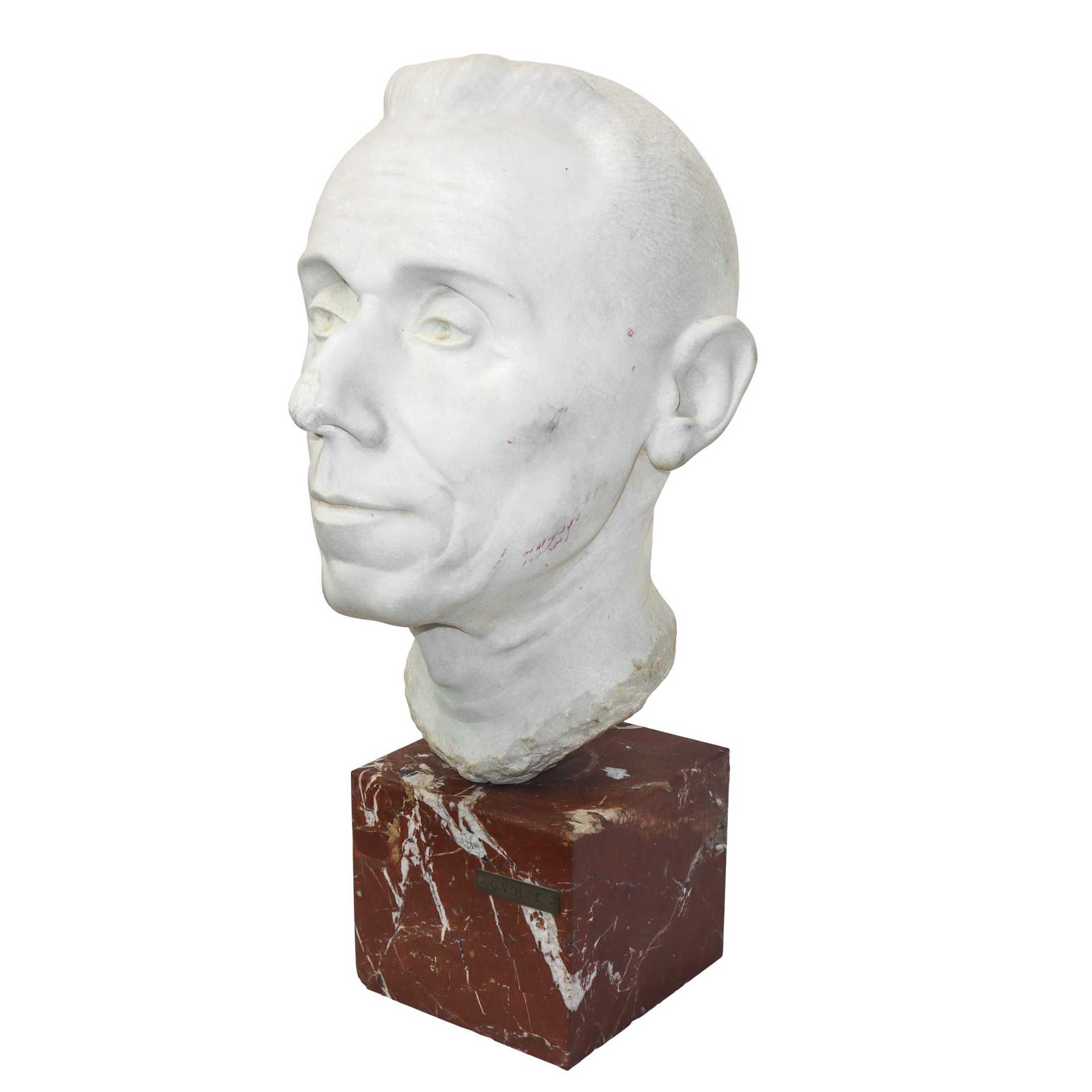 Testa di uomo, scultura in marmo bianco con basse in marmo rosso h cm 48 senza base h cm 36 Rottura al naso