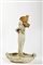 EDUARD STELLMACHER (Germania 1868 - 1932) Scultura raffigurante fanciulla con fiori, circa 1899. Scultura in ceramica policroma. Cm 71x49x34. Opera firmata in basso a destra E. Stellmacher.