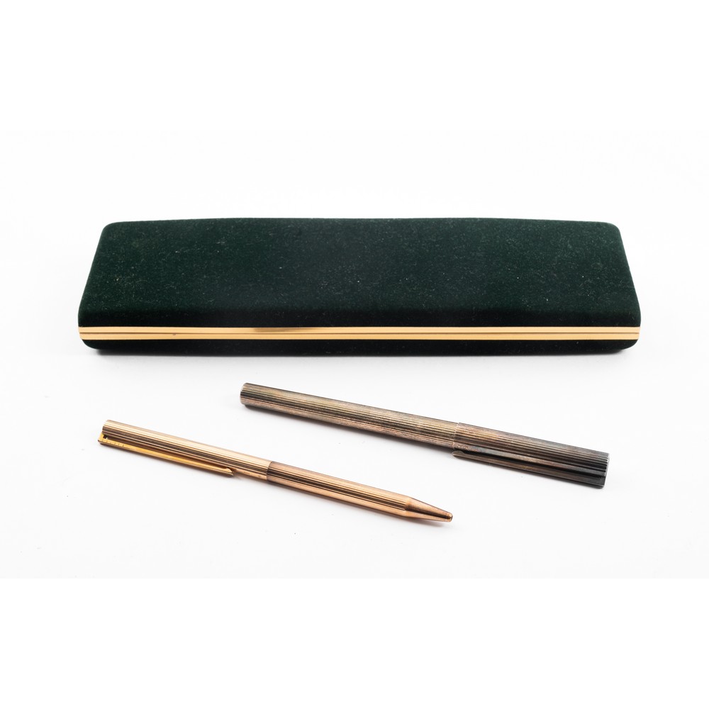 Penna stilografica in argento con pennino in oro giallo 18 KT e penna a sfera.