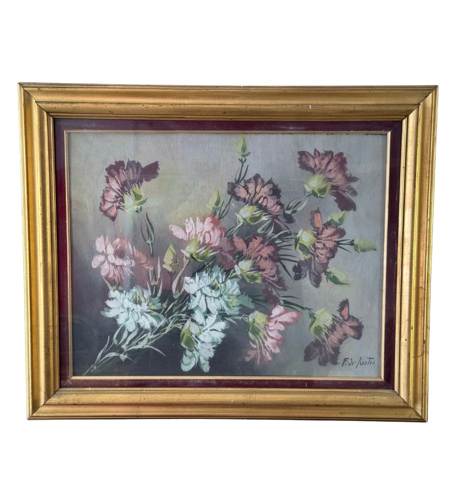 Dipinto olio su tavola, periodo XX secolo scuola Italiana, raffigurante Fiori. Dimensioni compreso cornice: 52x43 cm. Dimensioni interno cornice: 40x31 cm. Firmato in basso a destra F. De Curtis. Opera in buone condizioni con lievi segni di vissuto come da foto allegate.