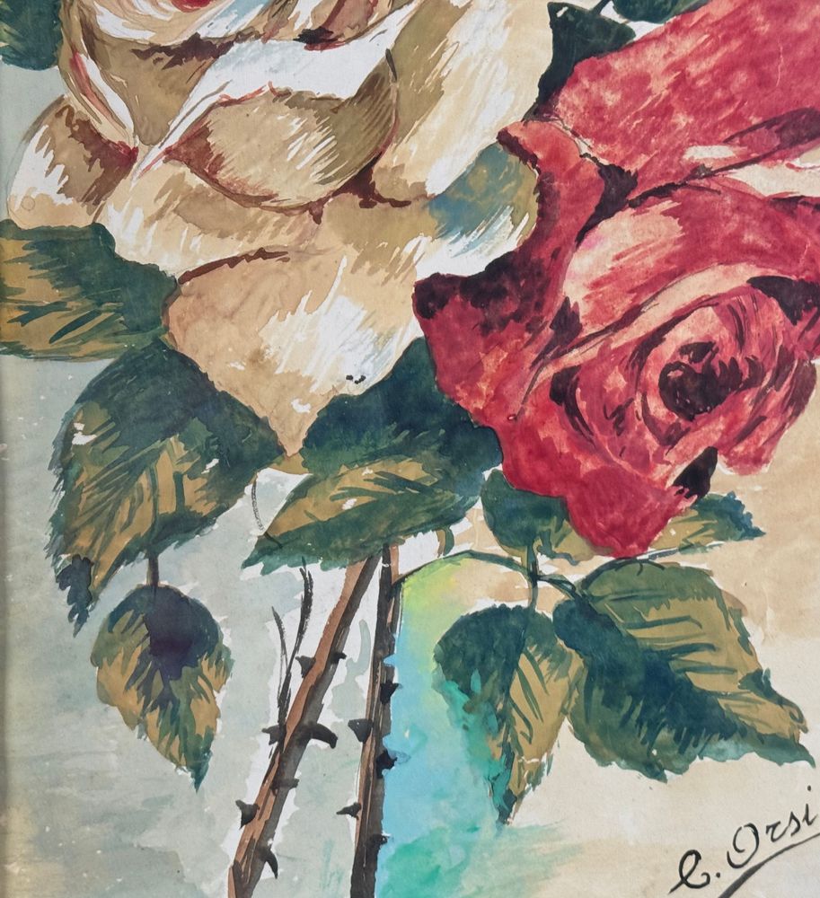 Dipinto acquerello su carta, periodo XX secolo scuola Italiana raffigurante Composizioni di fiori. Dimensioni compreso cornice: 43x59 cm. Dimensioni interno cornice: 26x42 cm. Firmato in basso a destra da artista non identificato. Opera in buone condizioni e di eccellente qualità artistica.