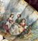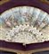 Ventaglio a figure neoclassiche in bacheca. Dimensioni compreso cornice:...