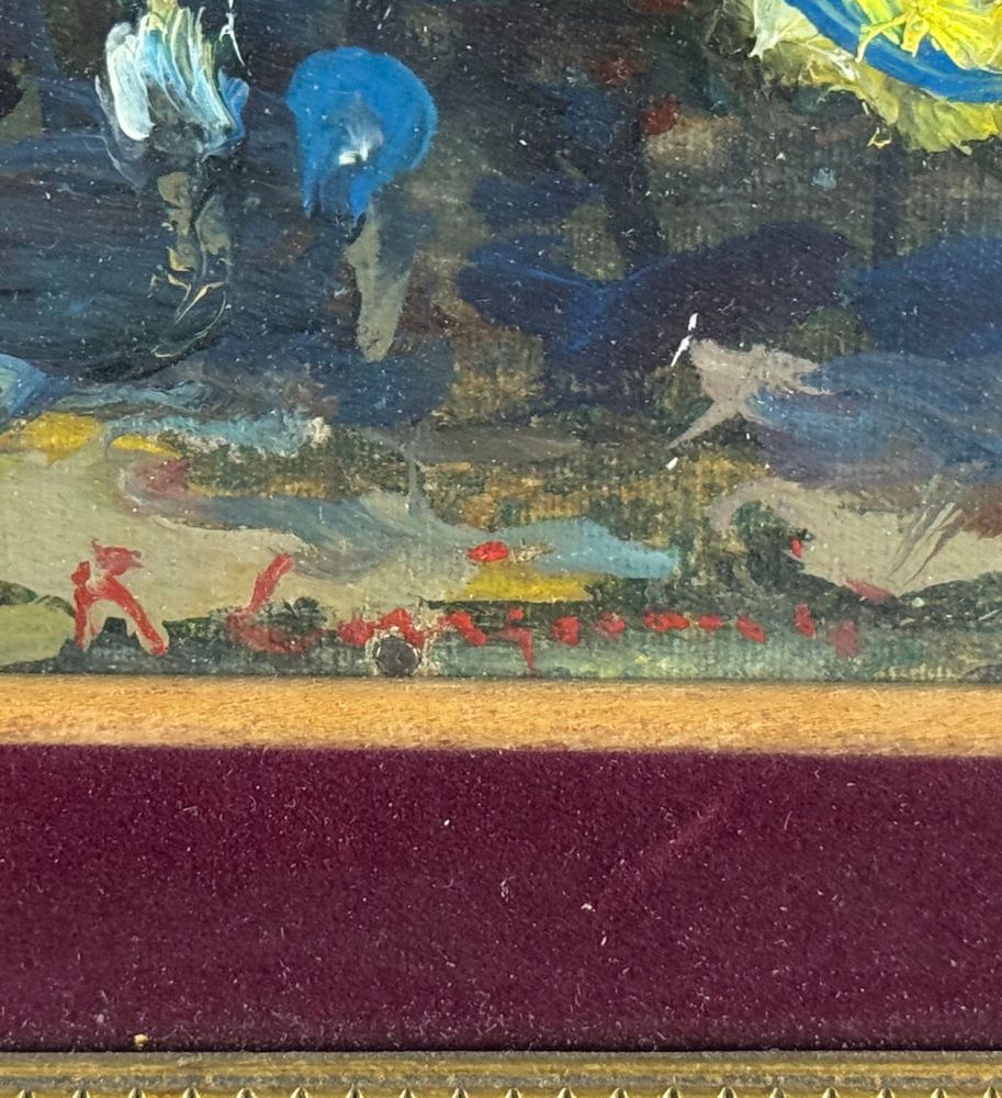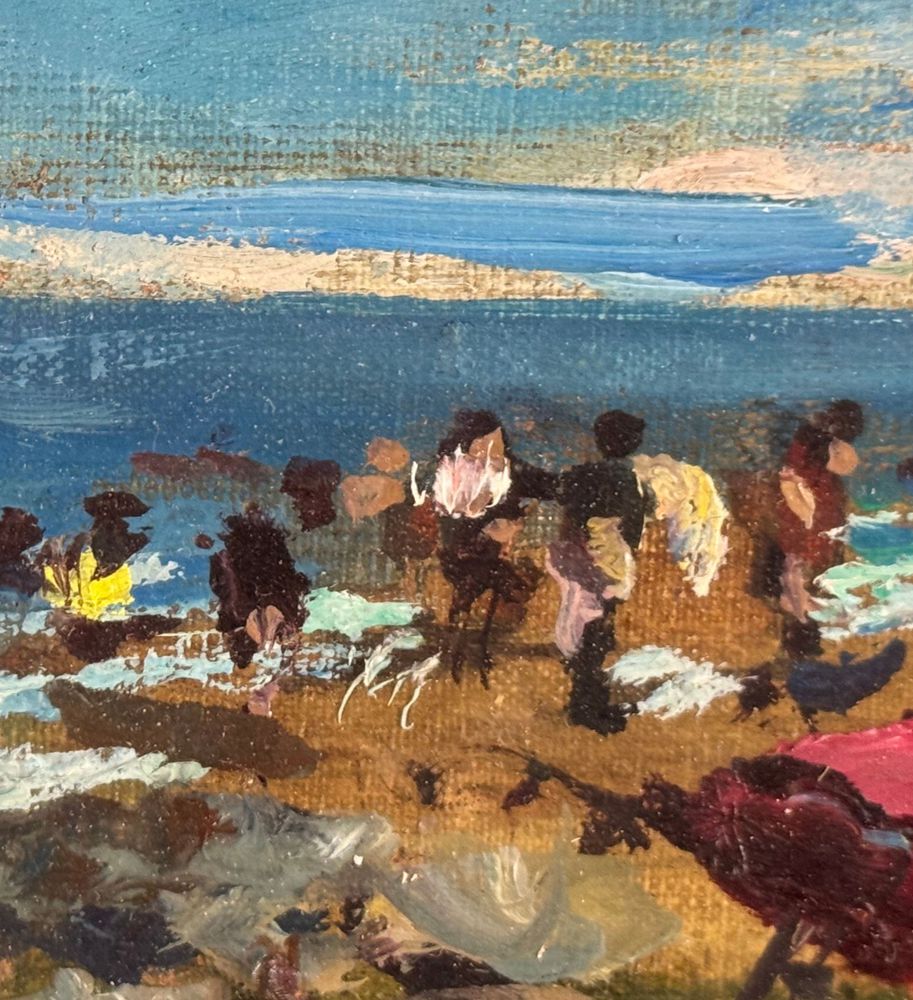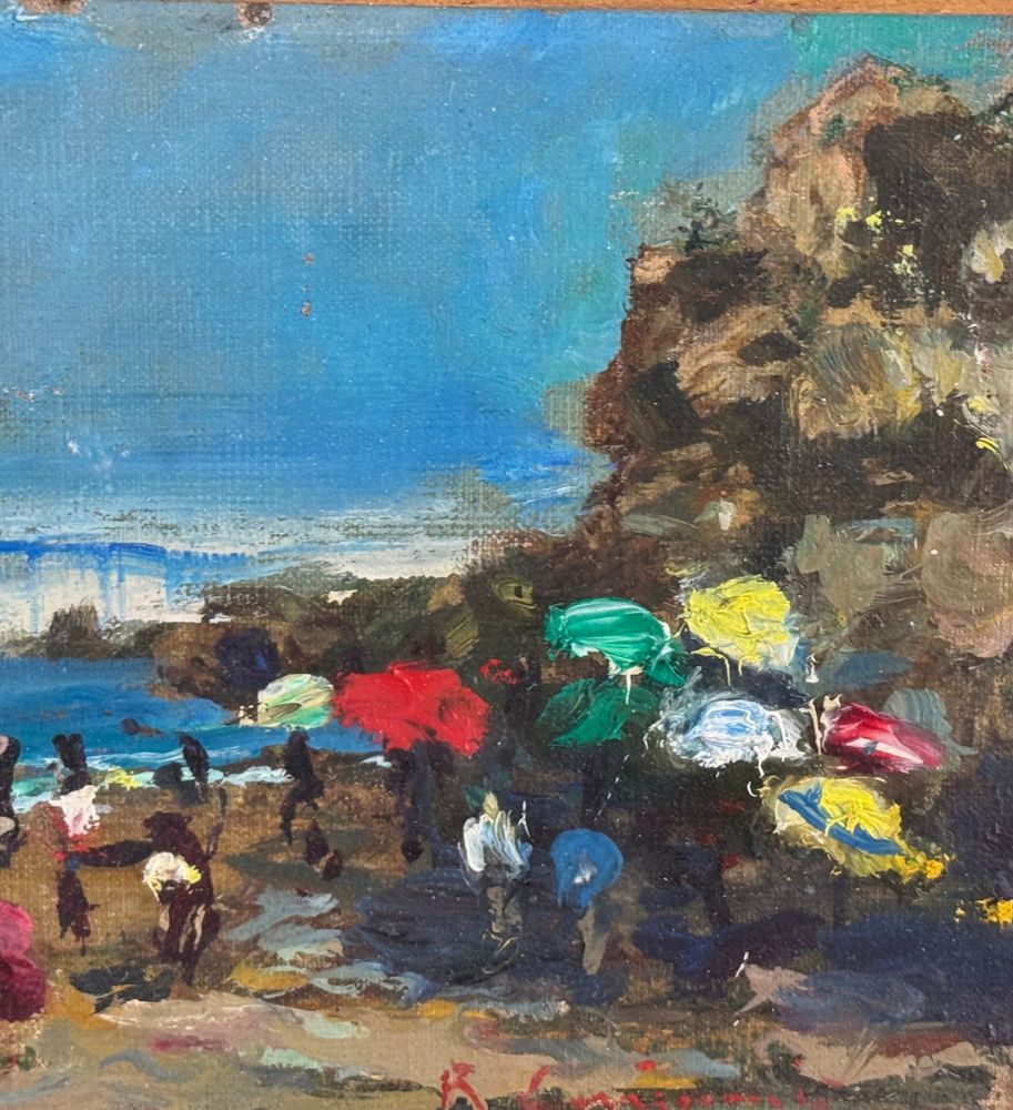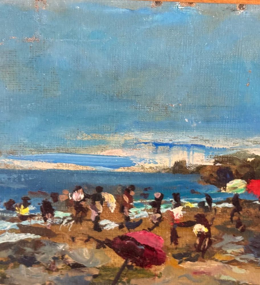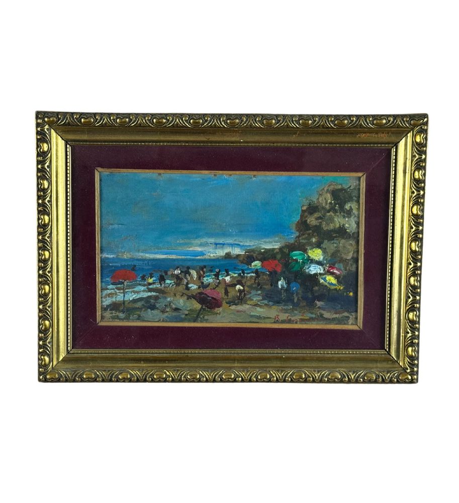 Dipinto olio e gessetto su cartoncino, periodo XX secolo scuola Italiana, raffigurante Marina napoletana. Dimensioni compreso cornice: 36x25 cm. Dimensioni interno cornice: 15x26 cm. Reca firma in basso a sinistra R. Carignani. Opera in buone condizioni.