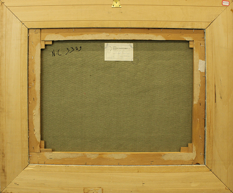 ORFEO TAMBURI, "Case al Quai de Valmy", 1982, olio su tela, cm 50x70, cm con cornice 73x88x4, peso 7,20 kg. Al fronte: firma in basso a destra. Al verso: in alto etichetta Galleria Nuovo Sagittario Milano con informazioni. Opera con autentica su foto dell'artista e timbro Meeting Art. Certificato di provenienza Orler TV. Opera con cornice.