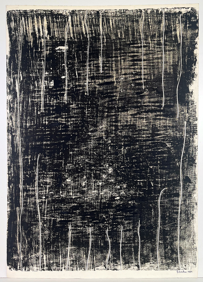 VENTURINO VENTURI Monotipo, disegno impresso a olio su carta anno 1971, Senza titolo, Certificato di autenticità a cura di Lucia Fiaschi su fotografia. Pubblicato a catalogo generale "Venturino Venturi opere selezionate 1938-1996" pg 112 70x100 cm