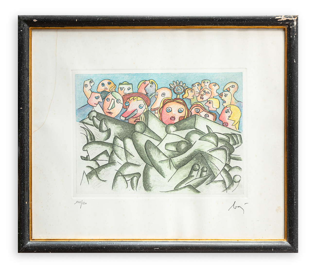 Firma e numerazione (Esemplare 128/150) a matita al fronte