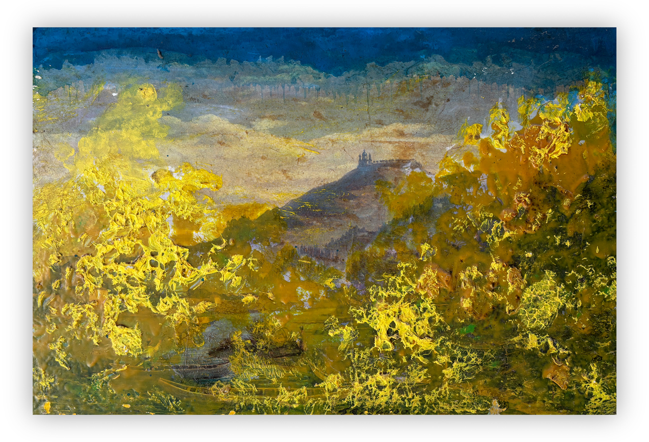 Olio e tecnica mista su cartone, applicato su masonite