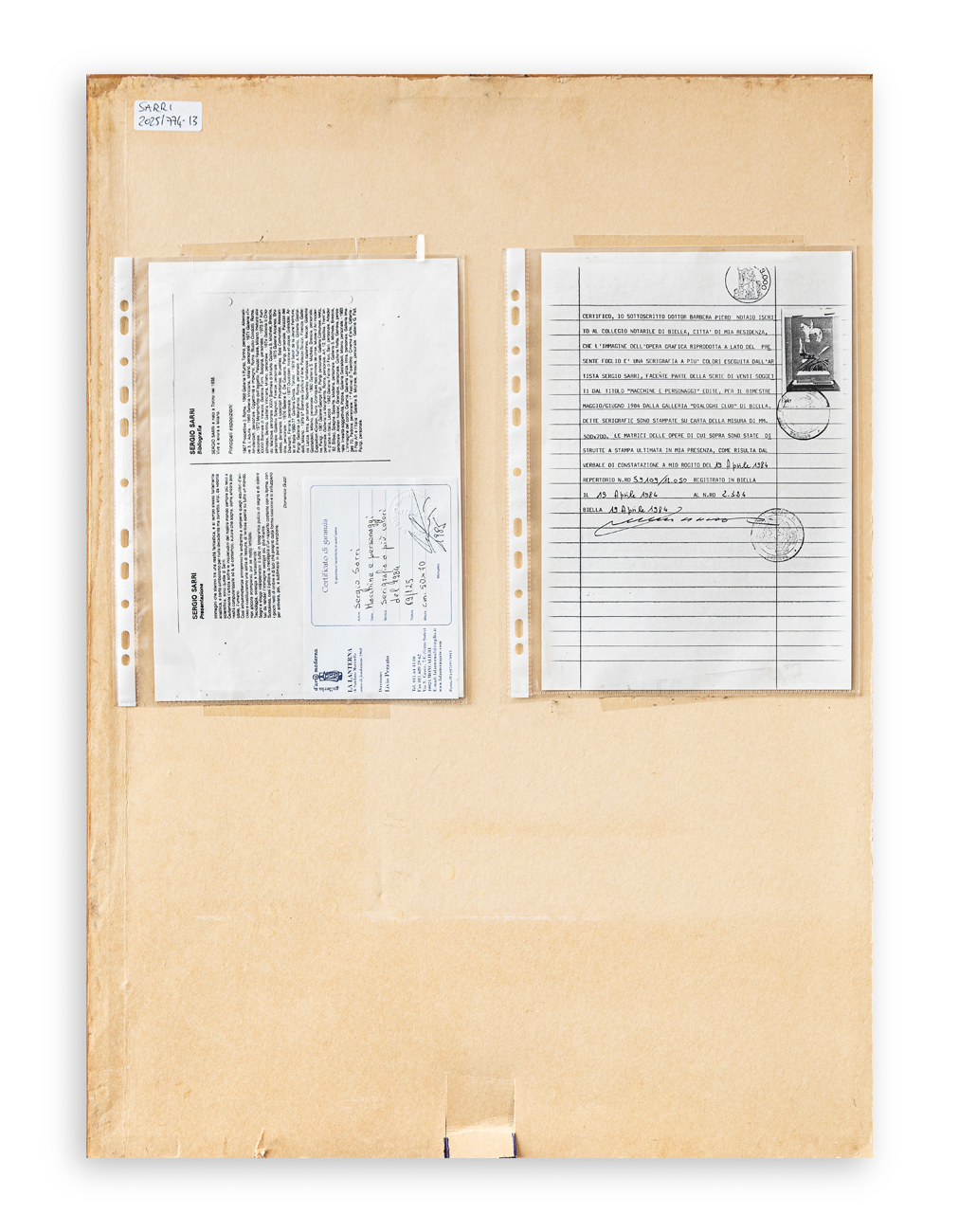 Certificato di garanzia a cura della Galleria La Lanterna (TO) applicato al retro del cartoncino protettivo