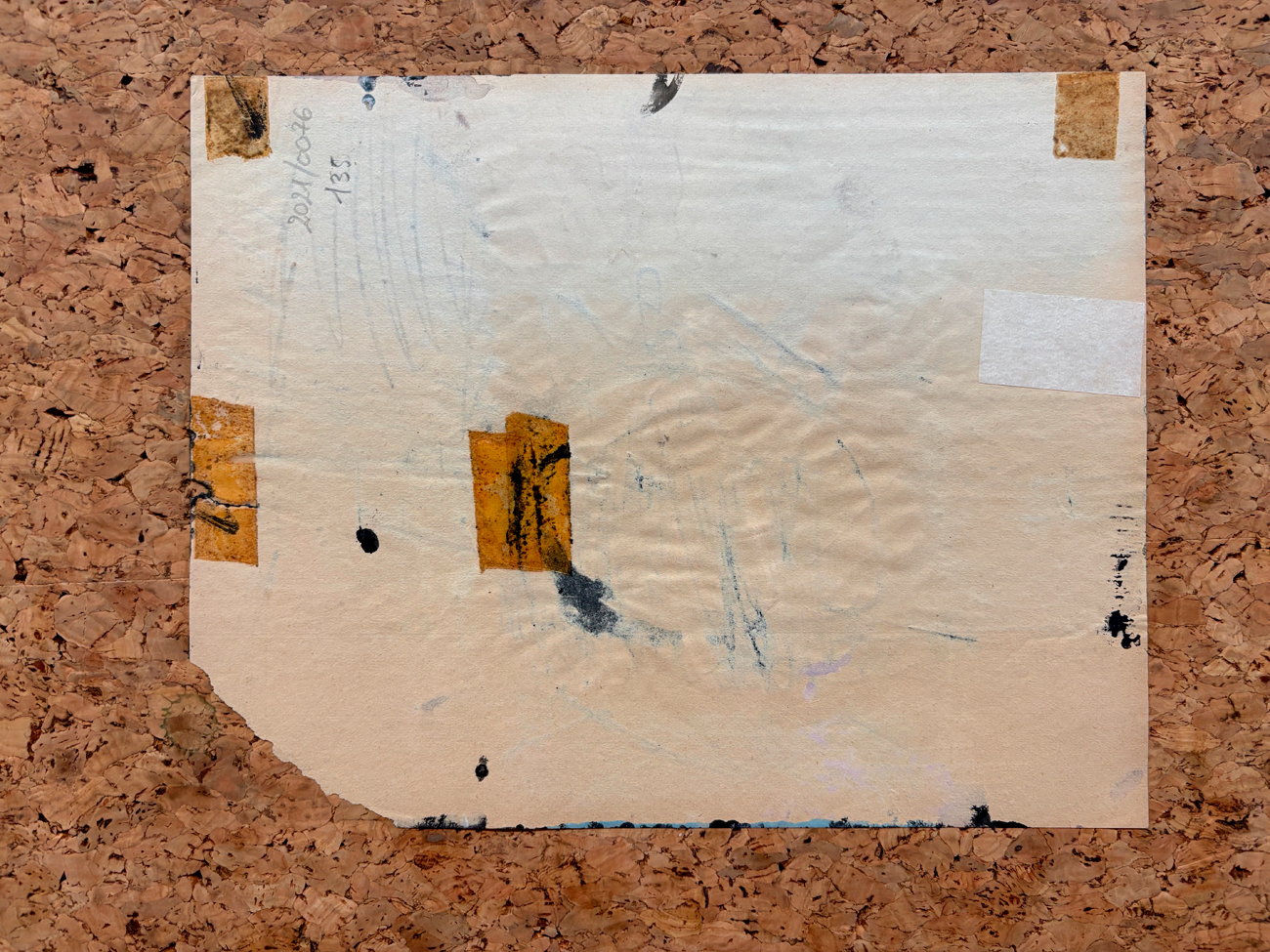 Presenta mancanza all'angolo inferiore destro e tracce di nastro agli angoli superiori