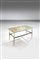 Struttura in ottone e metallo verniciato, piano in vetro di forte spessore decorato a motivi classici,