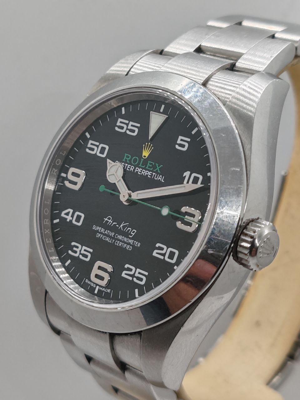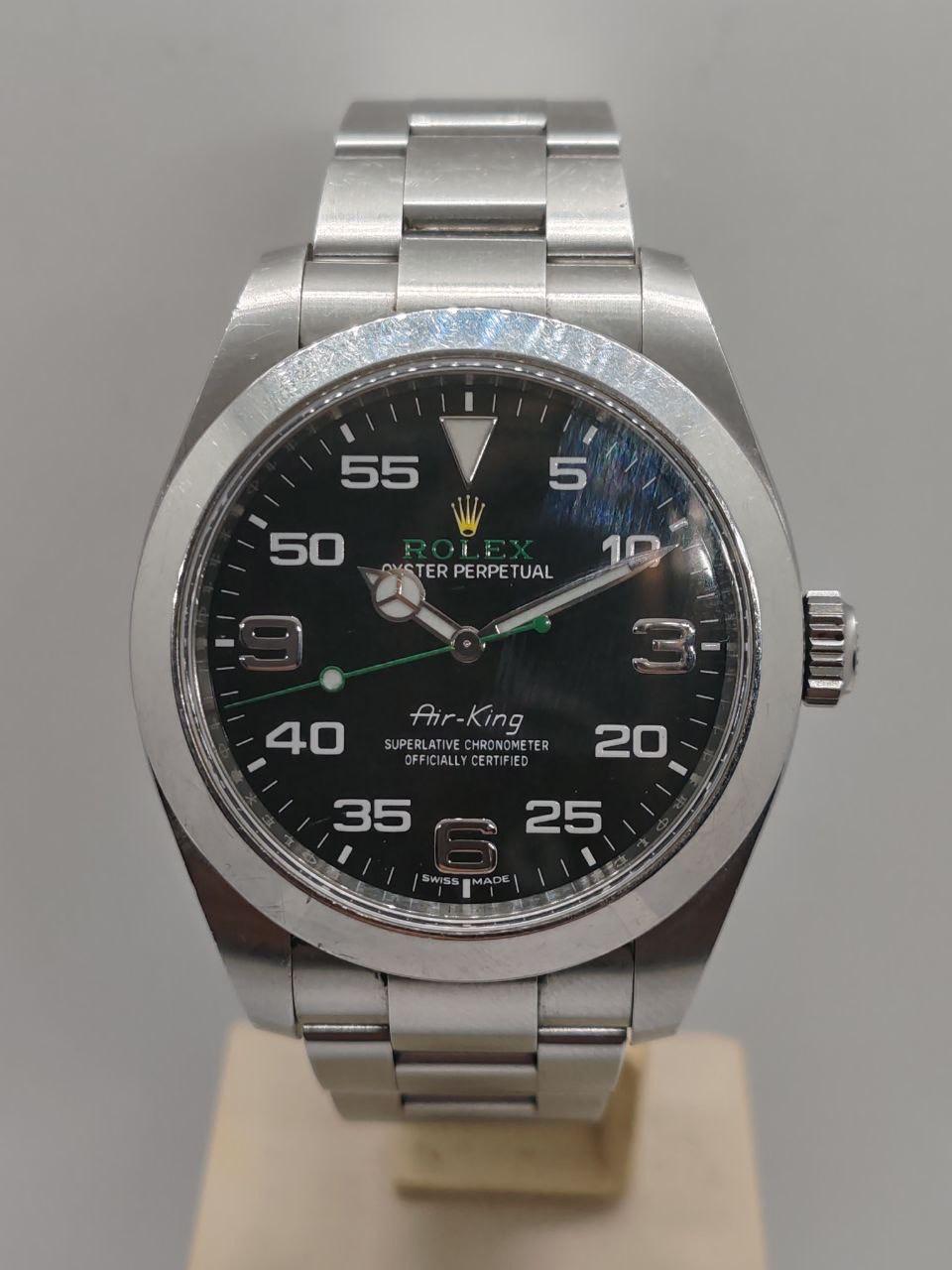Marca Rolex Modello (Orologio) Air King Numero di referenza 116900 Carica Automatico Materiale della cassa Acciaio Materiale cinturino Acciaio Anno di produzione approssimativo 2017 No documenti originali, no box la scatola è utilizzata solo per fotografie non in vendita Materiale della cassa Acciaio Diametro 40 mm Impermeabile 10 ATM Materiale lunetta Acciaio Vetro Vetro zaffiro Quadrante Nero Numeri sul quadrante Arabi Cinturino Materiale cinturino Acciaio Colore cinturino Acciaio Chiusura Déployante Materiale chiusura Acciaio - COMMISSIONE D’ASTA 25%