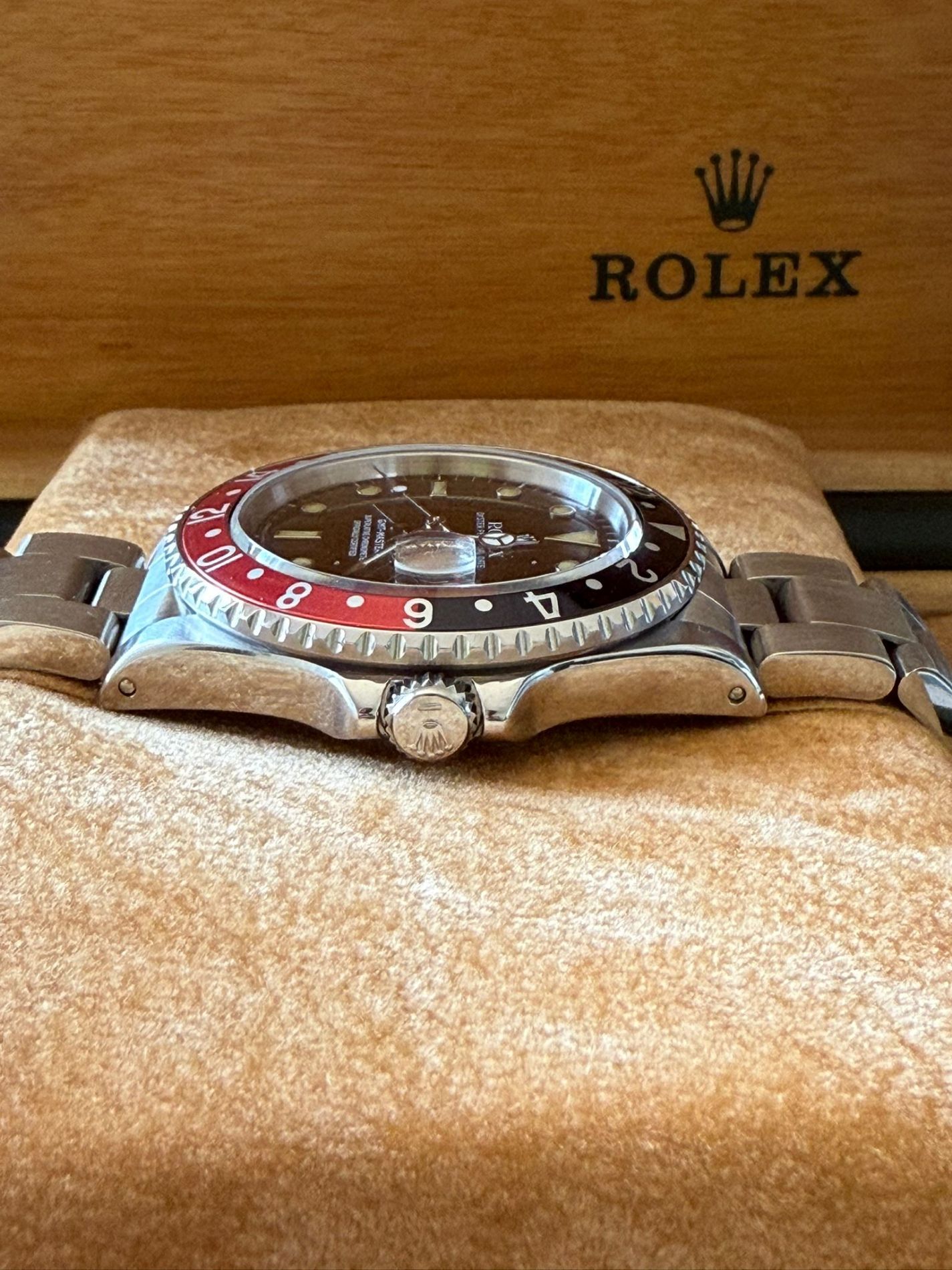 Marca Rolex Modello (Orologio) GMT-Master II Numero di referenza 16710 Carica Automatico Materiale della cassa Acciaio Materiale cinturino Acciaio Condizione Usato L'articolo presenta segni di usura lievi, come ad esempio graffi leggeri, ma non percepibili al tatto. No documenti originali Rolex, no box la scatola utilizzata solo per fotografie non in vendita Un anno di garanzia del negozio Carica Automatico anno 1991 Materiale della cassa Acciaio Diametro 40 mm Impermeabile 10 ATM Materiale lunetta Acciaio Vetro Vetro zaffiro Quadrante Nero Numeri sul quadrante Senza numeri Cinturino Materiale cinturino Acciaio Colore cinturino Acciaio Chiusura Déployante Materiale chiusura Acciaio Funzioni Data, GMT - COMMISSIONE D’ASTA 25%