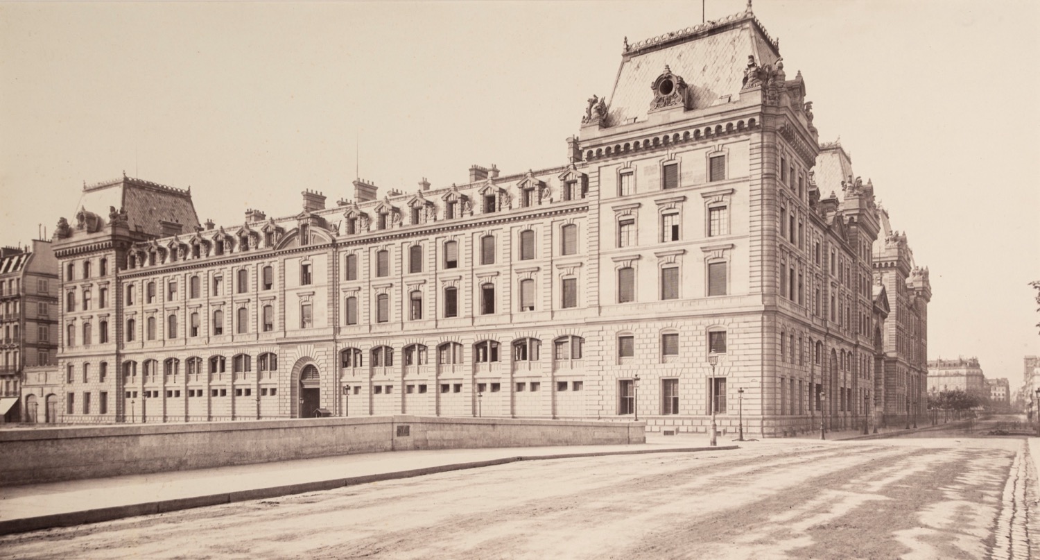 Charles Marville (1813 - 1879) - Caserne de la Cité, quai du Marché aux Fleurs, (prise du Pont de l'Hôtel Dieu), 1870s