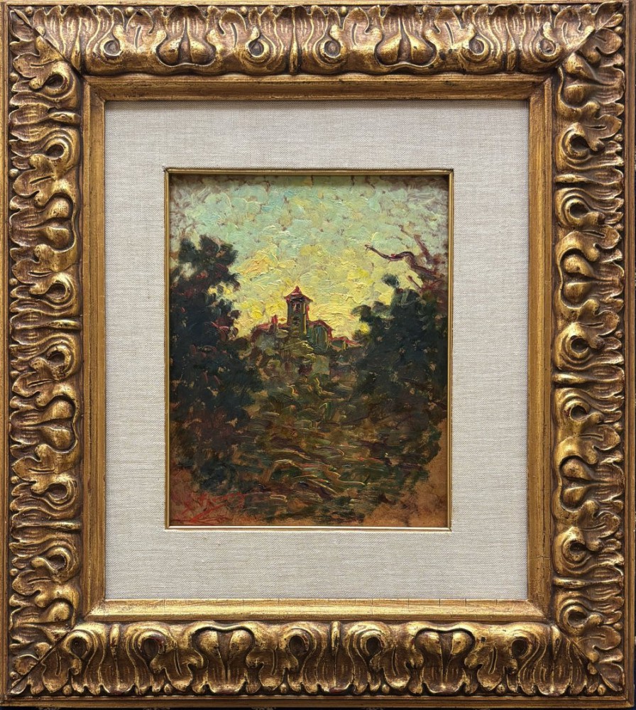 Severino Ferraris Prestinone (VB) 1903 -1979 Ultima Luce Olio su cartone cm 24,7x19,8 firmato in basso a sx