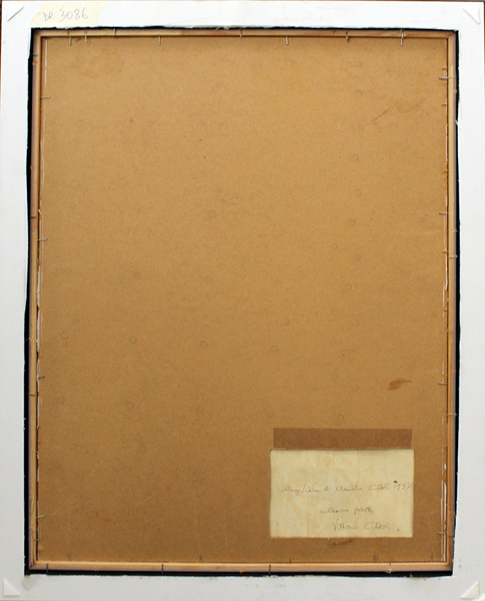 CLAUDIO CINTOLI, 1957, tecnica mista su carta, 65x49 cm, con cornice 74x59x3,5 cm, 4 kg, opera autenticata a cura dell'Erede Vittorio Cintoli. Al fronte: firmato e datato in basso al centro. Al verso: firma, data, tecnica, anno, di nuovo la firma. Opera con certificato della Daliano Ribani Arte. Opera con cornice in omaggio.