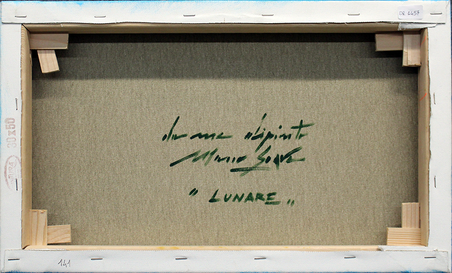 MARIO SOAVE, "Lunare", anni 2000, olio su tela, dim 30x50. Al verso: dichiarazione di autenticità da parte dell'artista, firma, titolo.