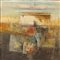 FIRMA ILLEGGIBILE, "Paesaggio", anni '90, tecnica mista su tavola, 80x80x1 cm, 5 kg. Al fronte: firma in basso al centro. Opera con certificato di provenienza della Daliano Ribani Arte. Opera senza cornice.