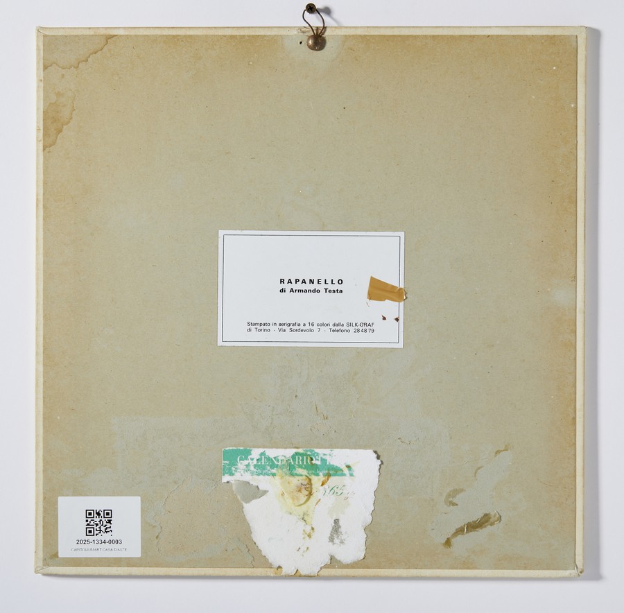 TESTA ARMANDO (1917 - 1992) RAPANELLO. Serigrafia a colori su tela su tavola. Cm 35,00 x 35,00. firma