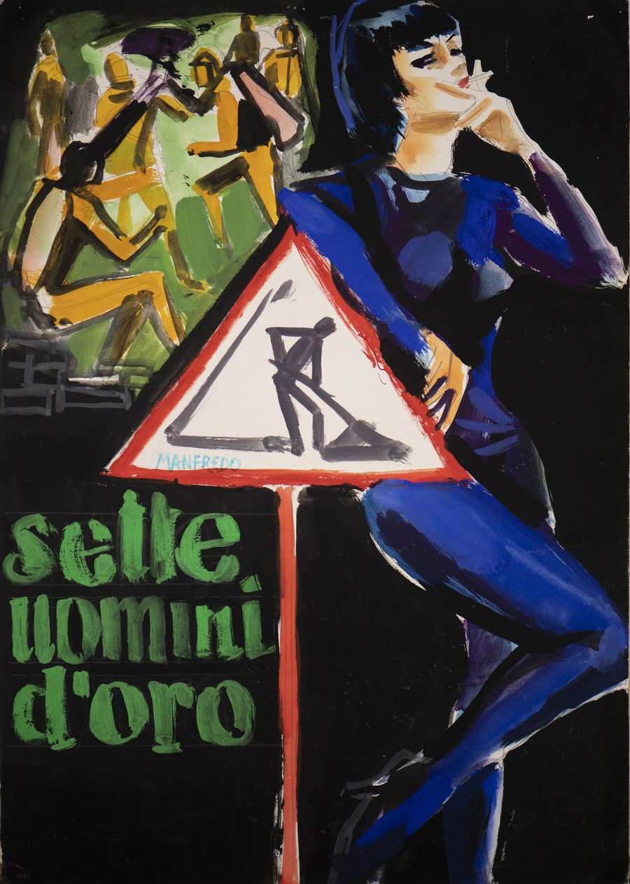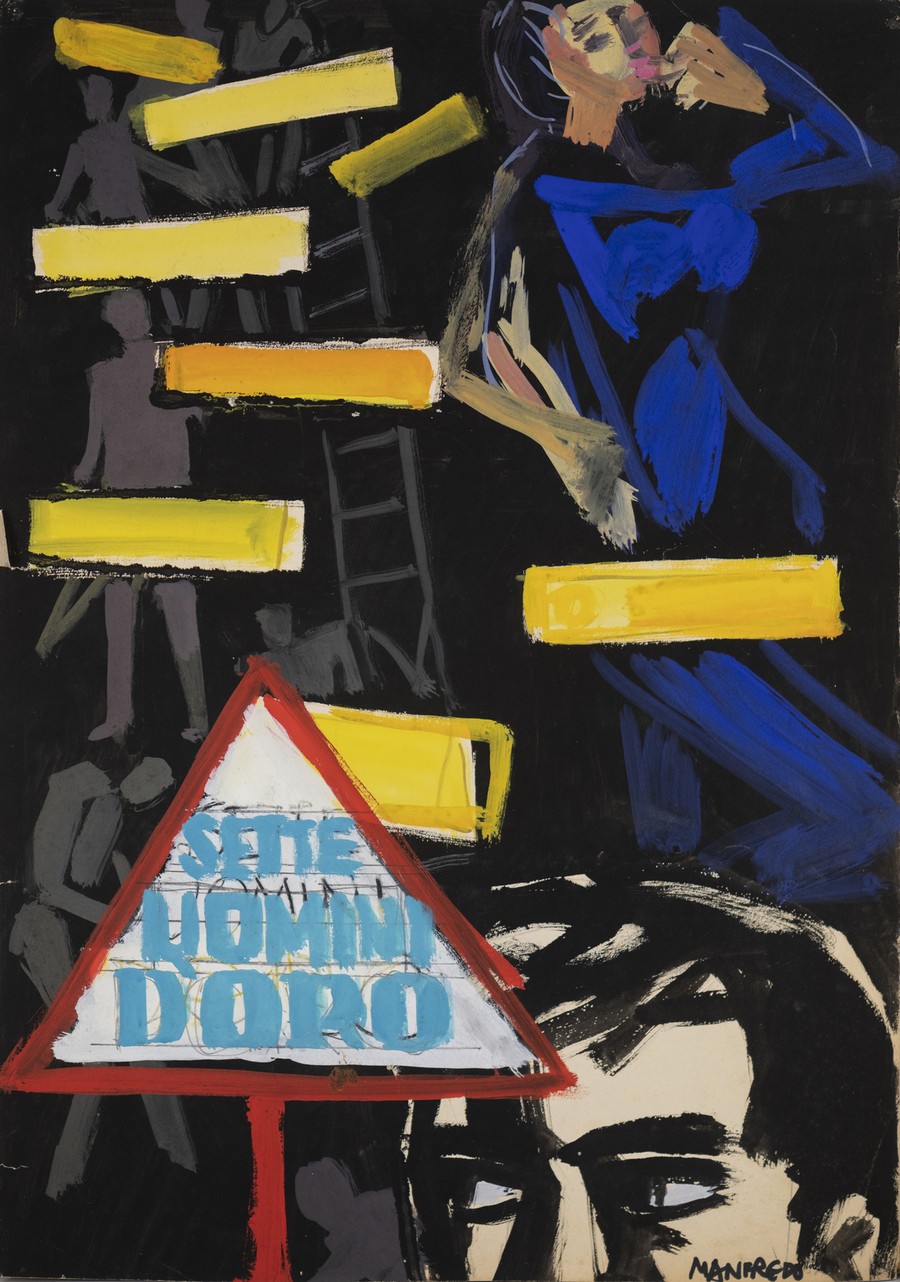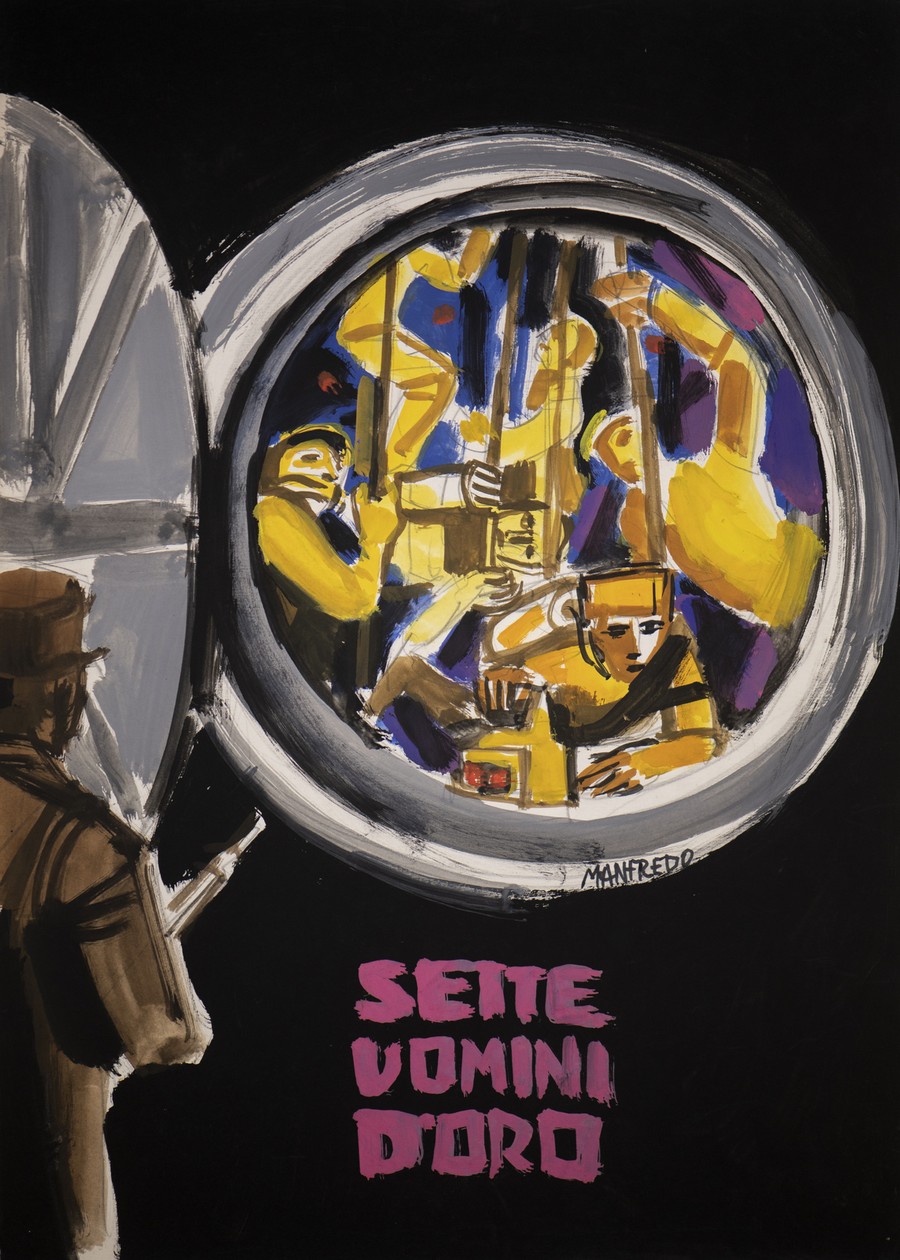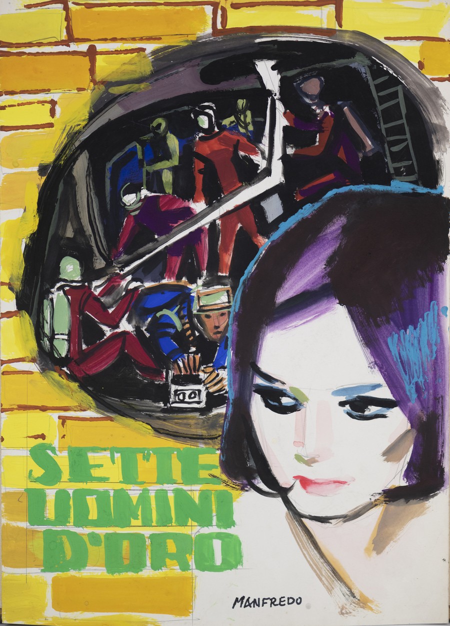 Acerbo Manfredo (1913 - 1989) - 5 Bozzetti originali per il Film di azione e poliziesco "7 Uomini d'oro" di Marco Vicario con Rossana Podestà, Philippe Leroy, Gastone Moschin.