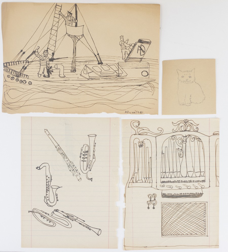 Lot 123 | Disertori Andrea (n. 1927) - Busta a sorpresa: libro a fumetti "Il pesce fantasma" e altri sketches, disegni ed exlibris. .