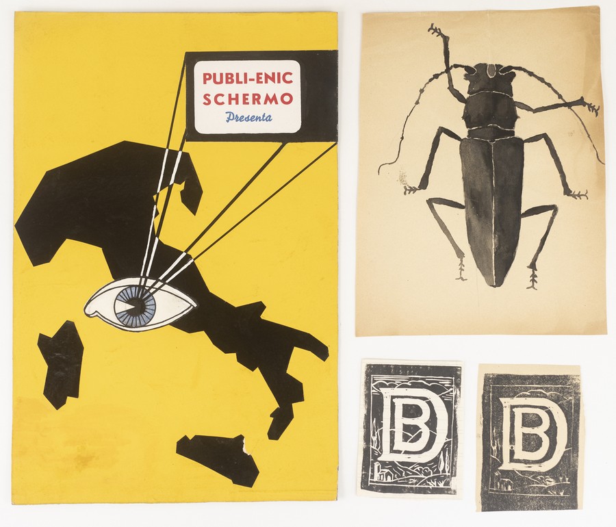 Disertori Andrea (n. 1927) - Busta a sorpresa: libro a fumetti "Il pesce fantasma" e altri sketches, disegni ed exlibris. .